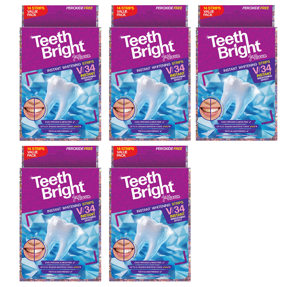 5 x 14 7TH Heaven Teeth Bright Advanced Whitening Strip Treatments 70 treatments total