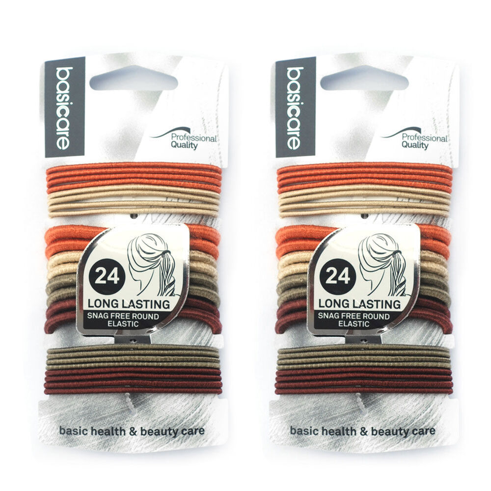 24 x Basicare Metallic Round Elastic Hair Ties including 16 x 2mm and 8 x 4mm sizes