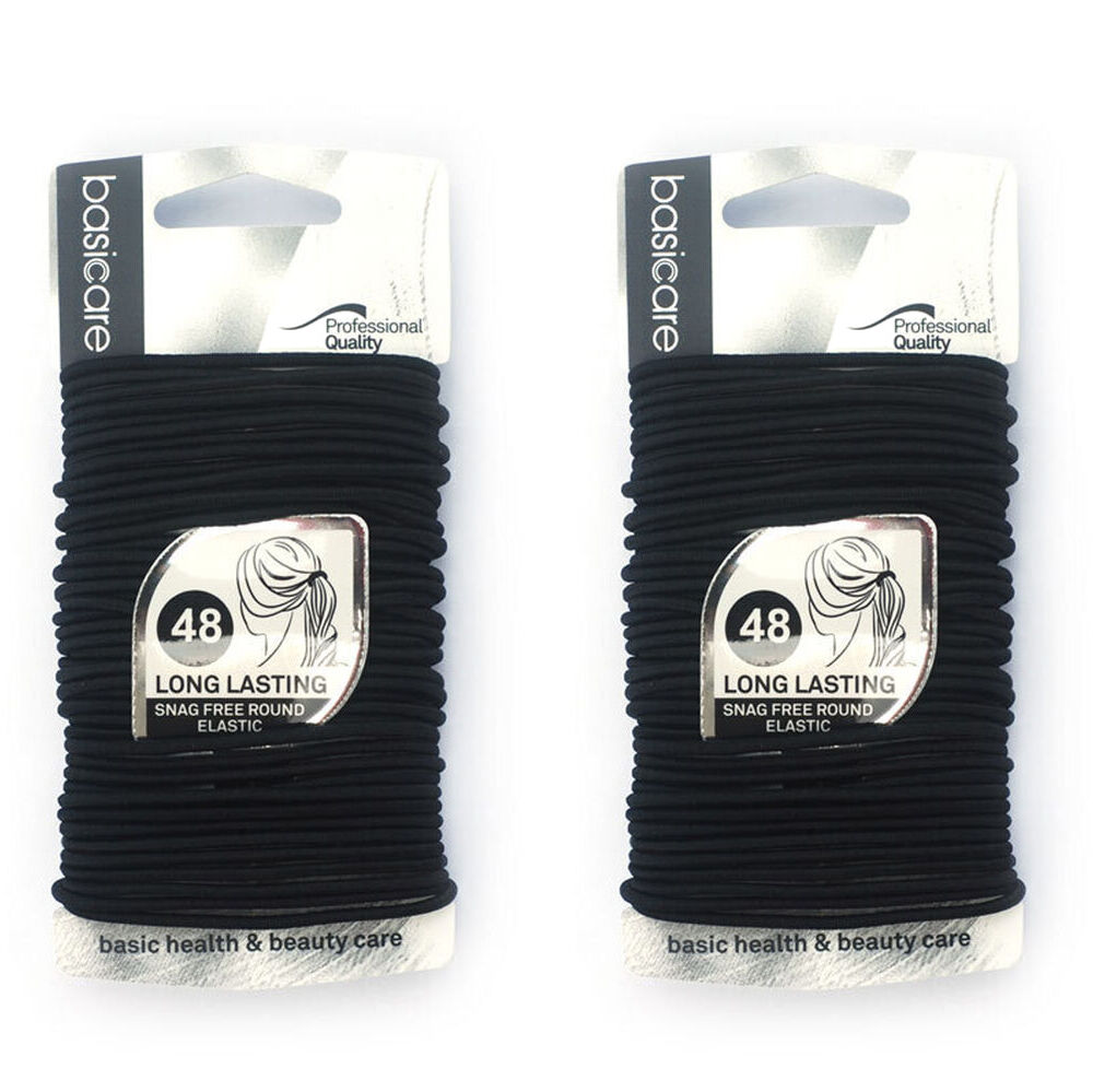 48 x Basicare Round Elastic Hair Ties Black 2mm each