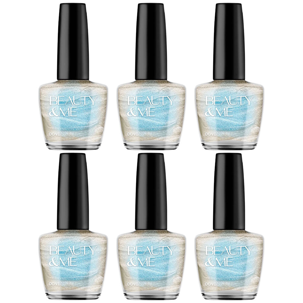 Experience timeless elegance with the Beauty & Me Dove Two Tone Metallic Creamy White Nail Polish Duo. This premium value set includes six 12ml bottles of soft creamy white polish with a radiant metallic finish that reflects light for a refined and graceful look.