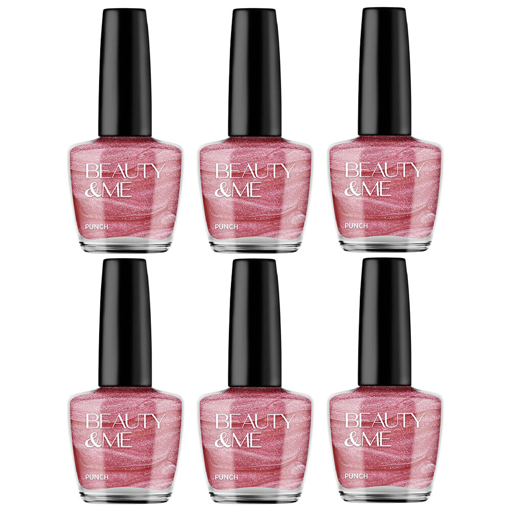 6 x Beauty & Me Punch Two Tone Metallic Light Pink Nail Polish 12ml each