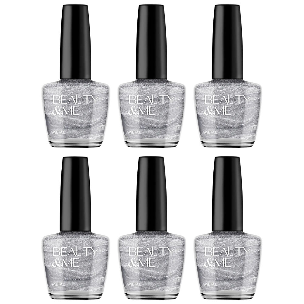 6 x Beauty & Me Silver Two Tone Metallic Nail Polish 12ml each