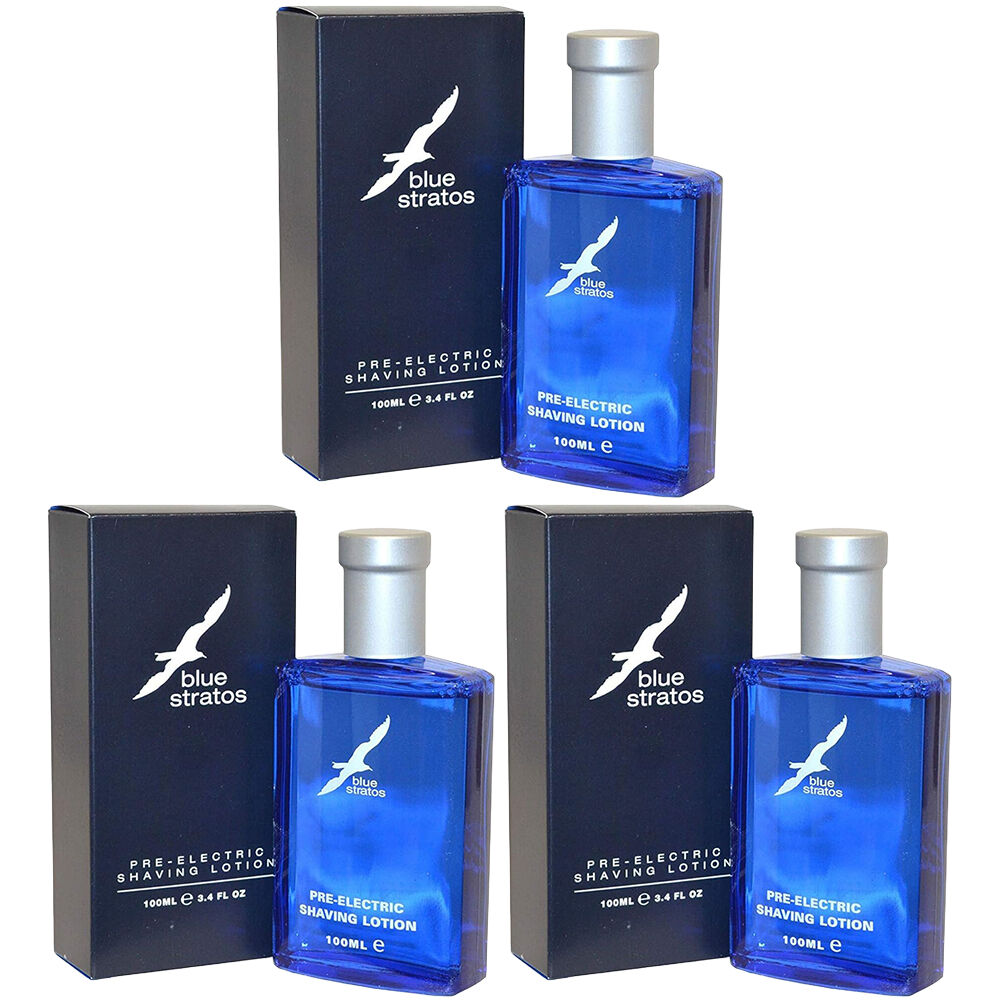 3 x Blue Stratos Pre Electric After Shave Lotion 100ml each