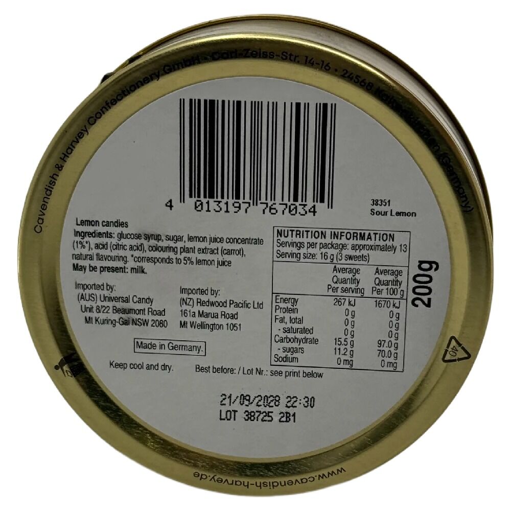 1 x Cavendish & Harvey Sour Lemon Drops Gold Tin 200g