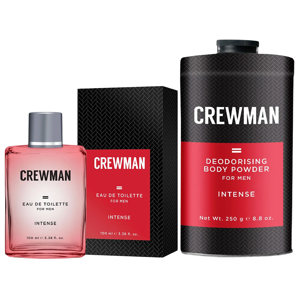 Experience bold daily freshness with the Crewman Intense Mens Talc Free Body Powder and Eau De Toilette Gift Set. This grooming bundle includes a 250g talc free body powder and a 100ml Eau De Toilette spray created for men who desire long lasting confidence and a powerful masculine scent.