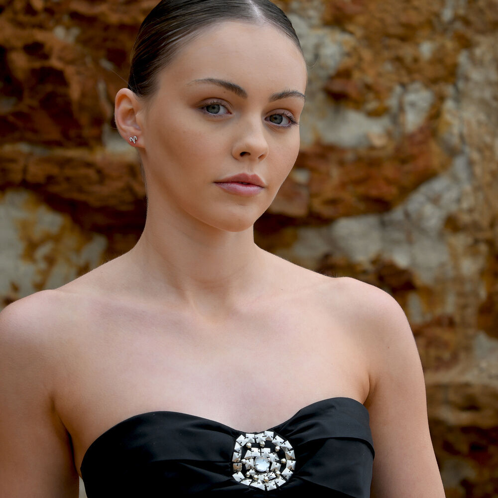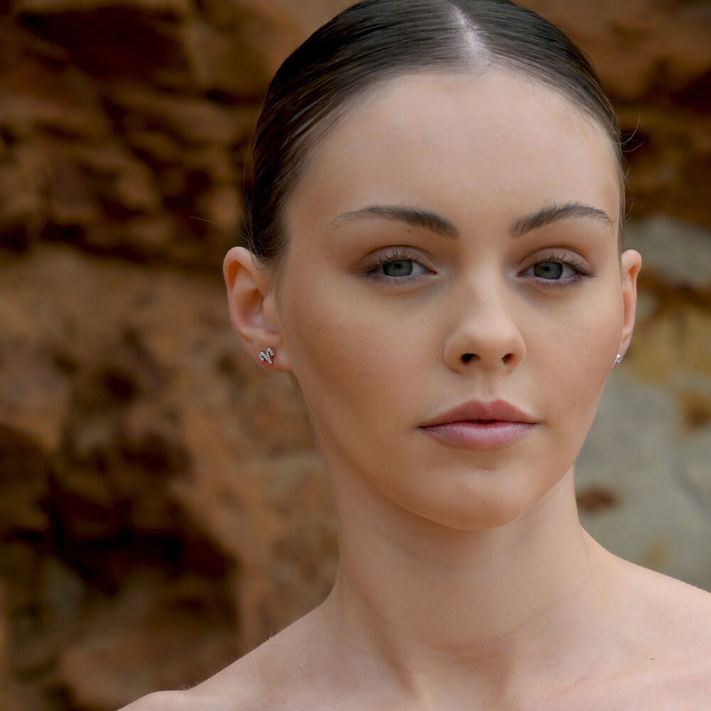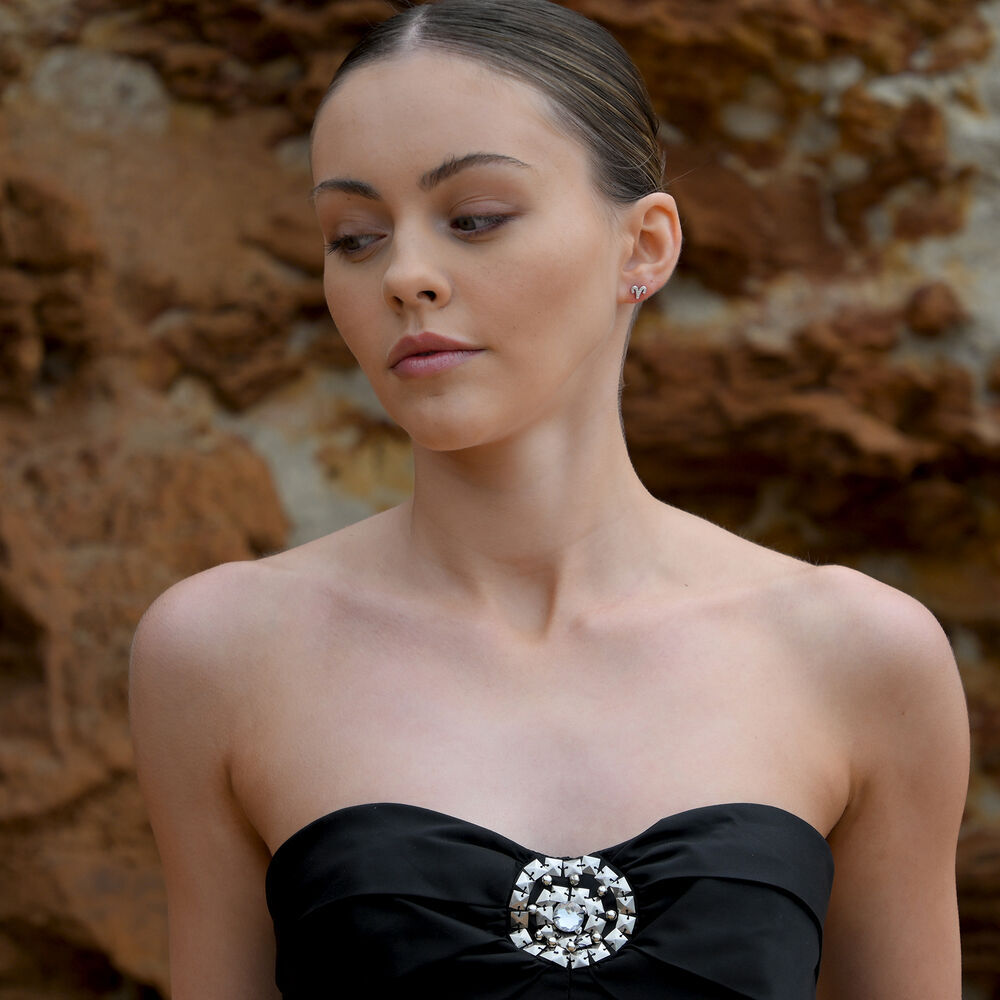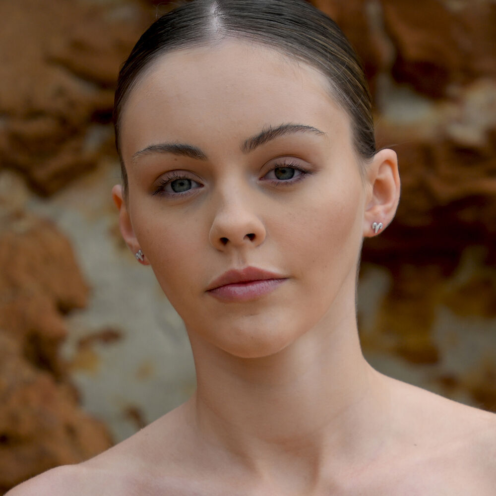 Each earring is meticulously crafted from solid sterling silver and finished with precious white rhodium plating, offering enhanced anti-tarnish protection and a brighter, more radiant silver shine. The surface is set with Australian cubic zirconia pavé, forming a delicate constellation of light that sparkles beautifully with every movement.