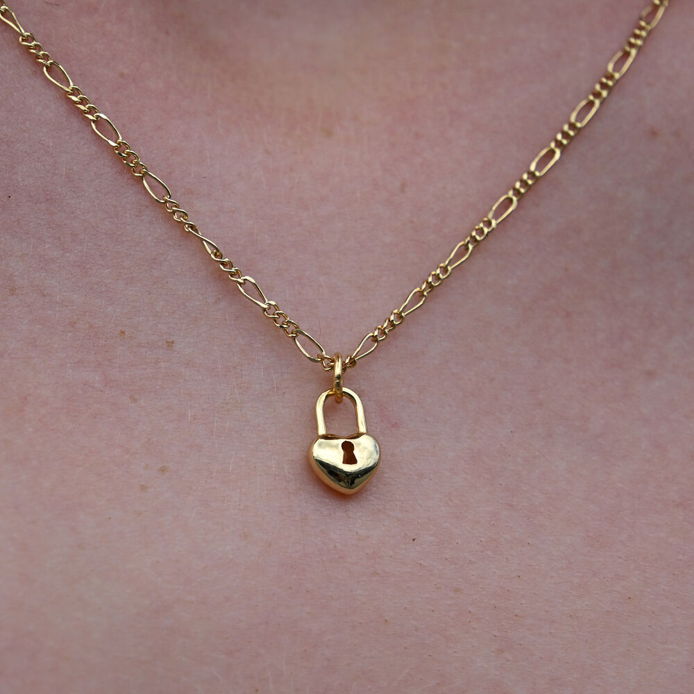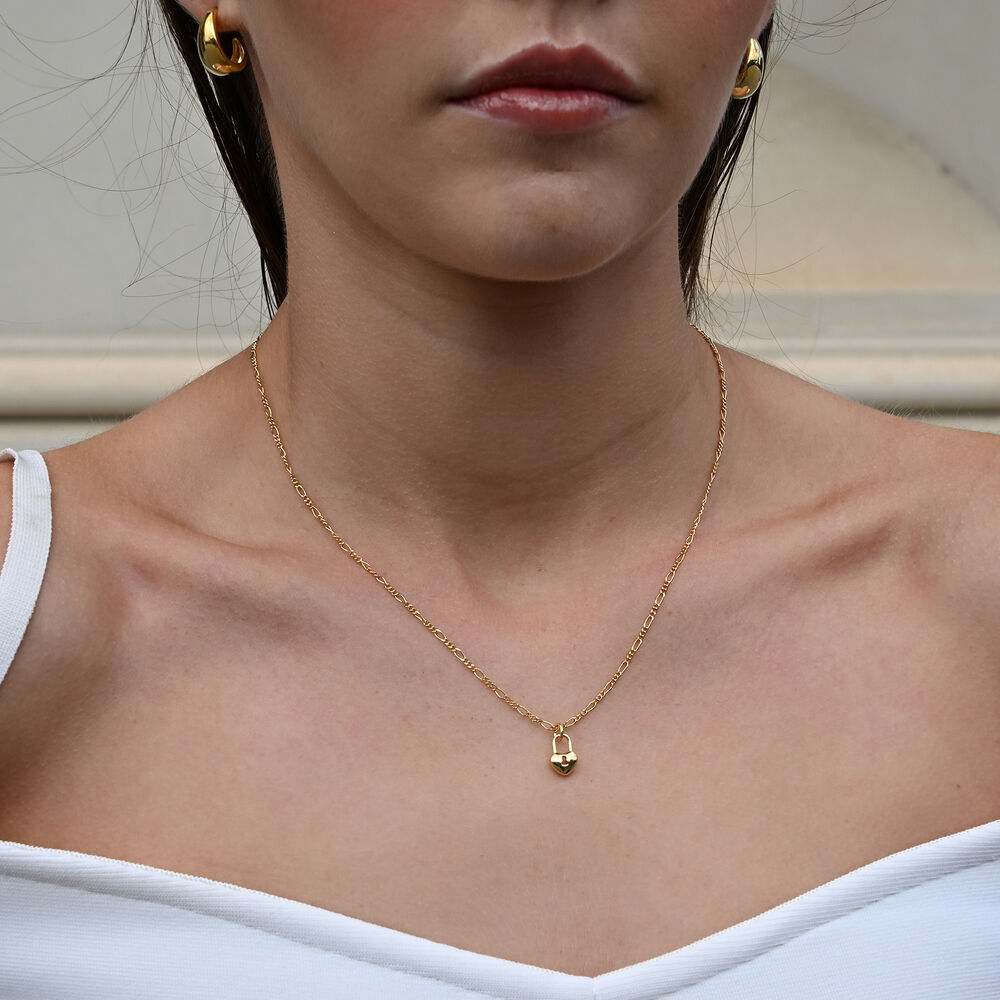 Dainty, chic and versatile for styling. Introducing Essie Fine Heart Padlock Pendant Necklace (Gold) - an everyday style fine neckpiece adding a subtle strength and romance to your styling. This design features a delicate love heart padlock pendant with a fine link chain necklace. This neckpiece is made in sterling silver with 18K gold plating for hypoallergenic and enduring wear. This neckpiece is 45cm long including a 5cm adjustable link for your ideal fit. Perfect for modern, chic, feminine, minimalist, necklace layering, smart casual, casual, everyday styles and more. Hypoallergenic, nickel, lead, and cadmium free.