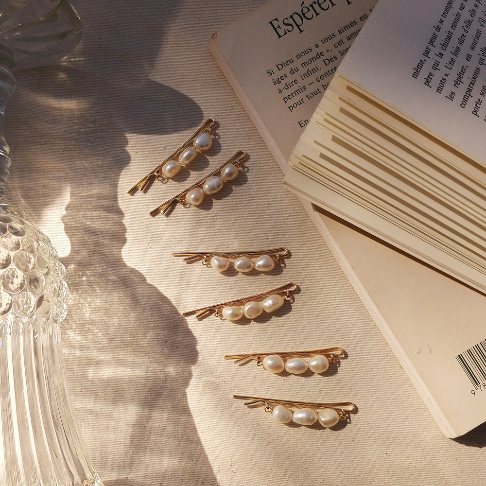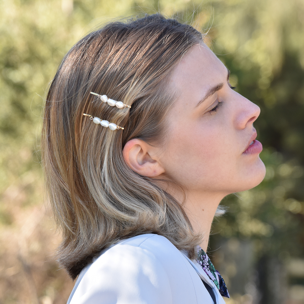 Freshwater pearl hair clip set (a set of 2 identical hair clips)