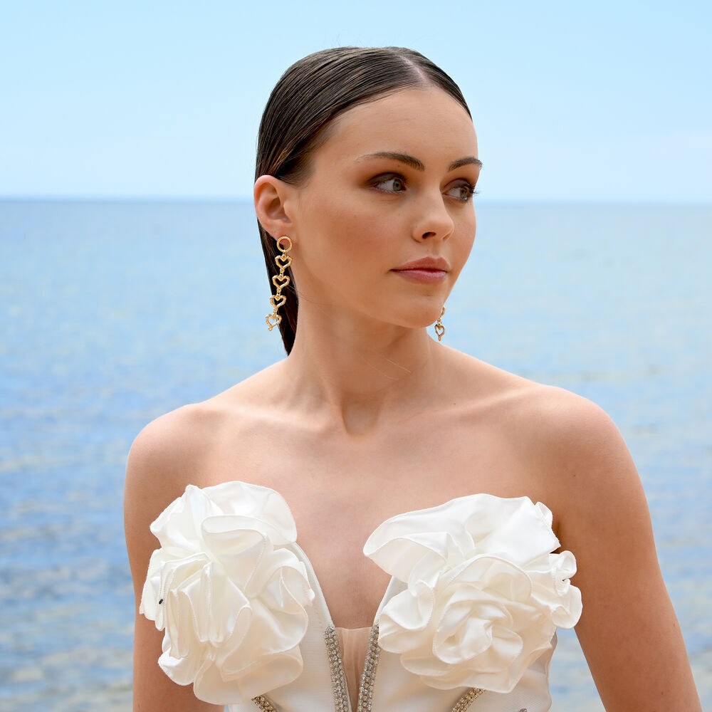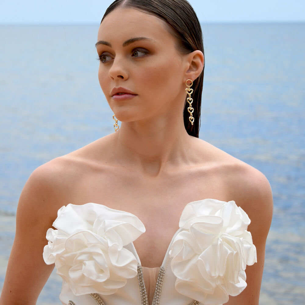 Expressive and artfully imperfect, the Haven Artisan Sculptured Heart String Earrings are designed to move with emotion and individuality. Featuring a cascading row of open-heart motifs, each form is gently irregular, creating a fluid, sculptural silhouette that feels both romantic and contemporary.