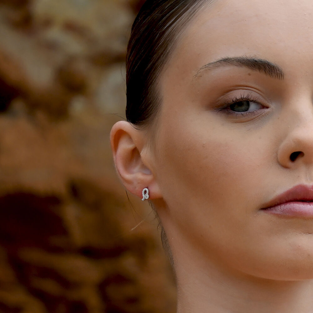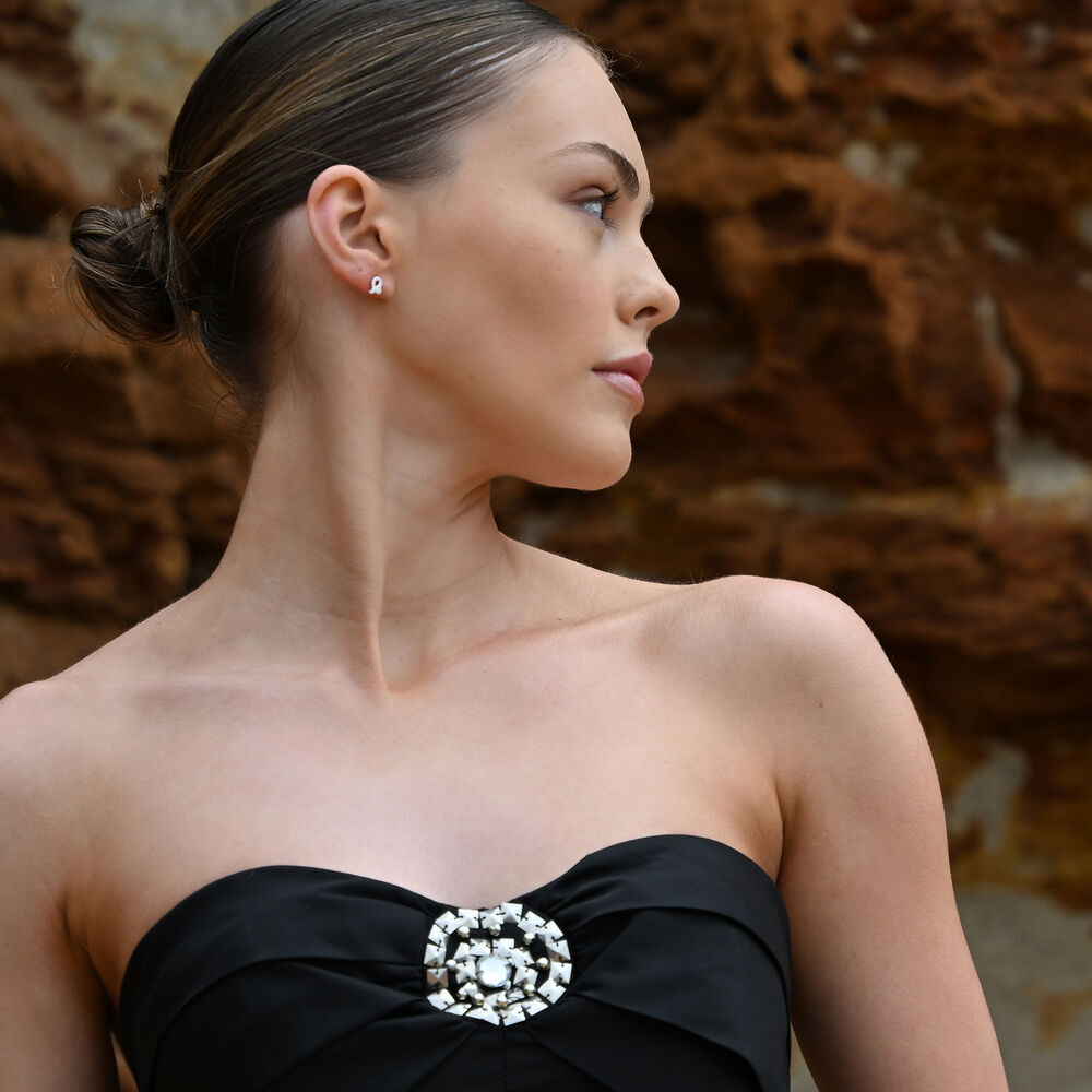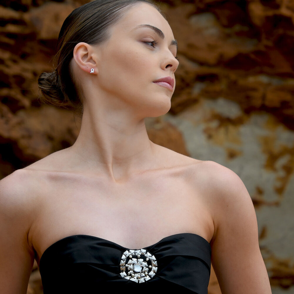 Each earring is meticulously crafted from solid sterling silver and finished with precious white rhodium plating, offering enhanced anti-tarnish protection and a brighter, more radiant silver shine. The surface is set with Australian cubic zirconia pavé, forming a delicate constellation of light that sparkles beautifully with every movement.