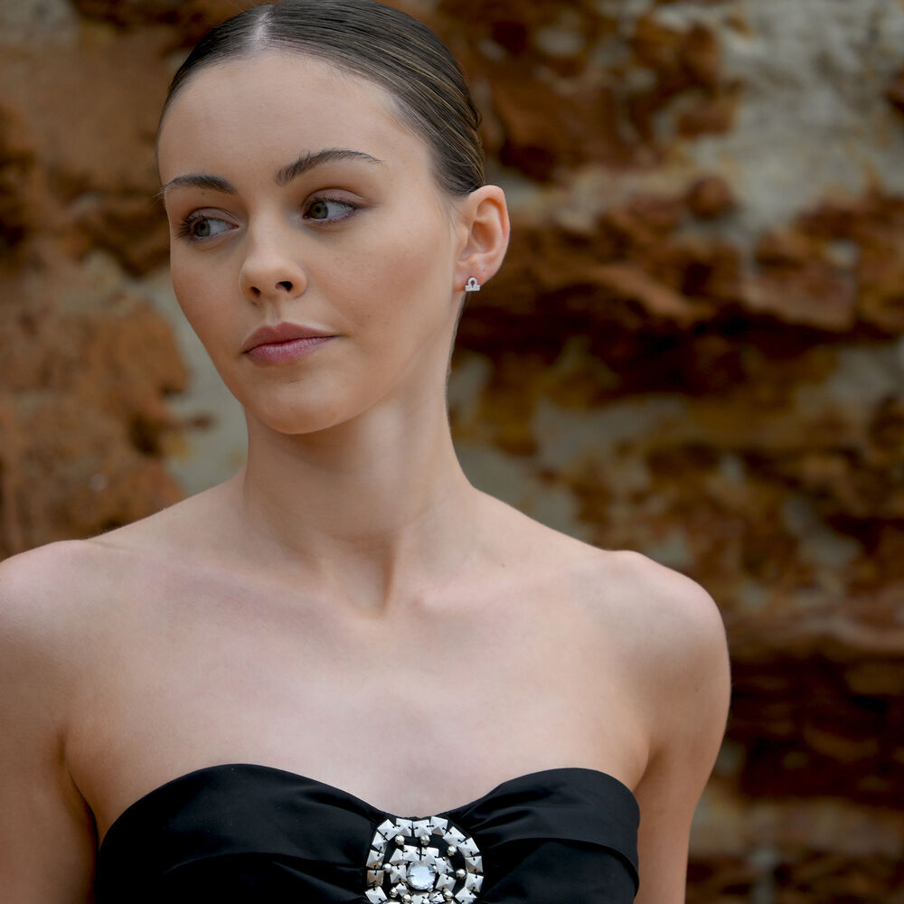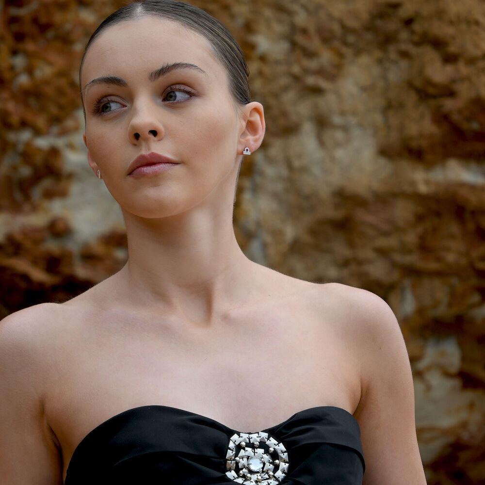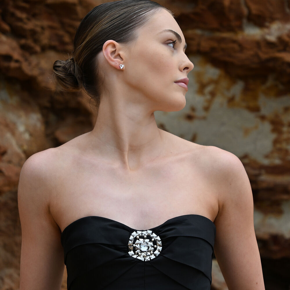 Each earring is meticulously crafted from solid sterling silver and finished with precious white rhodium plating, offering enhanced anti-tarnish protection and a brighter, more radiant silver shine. The surface is set with Australian cubic zirconia pavé, forming a delicate constellation of light that sparkles beautifully with every movement.
