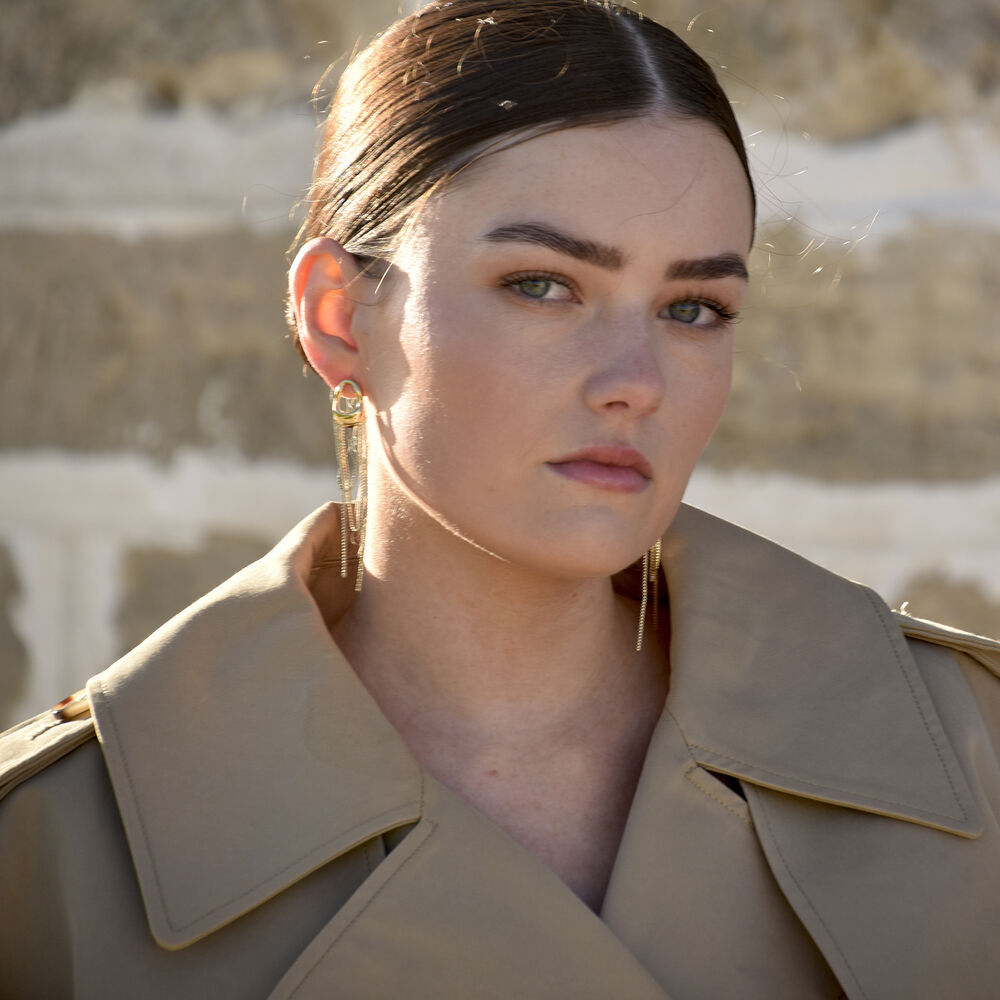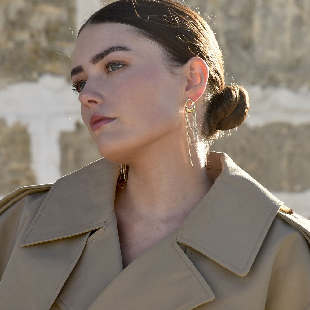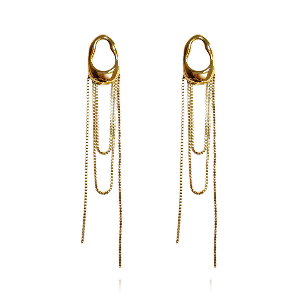 From subtle curves to dazzling drops. Introducing Stellar Drape Diamante Tassel Earrings (Gold) - a light ear statement combining architectural shape with a sparkling glamour. This design features a fluid metal top that flows seamlessly into sparkling diamante tassels. The earrings are made in environmentally friendly copper with 18ct gold plating. Lightweight yet bold, they are perfect for making a statement at parties, events, or everyday style upgrades. Available in 18ct gold plating or silver.