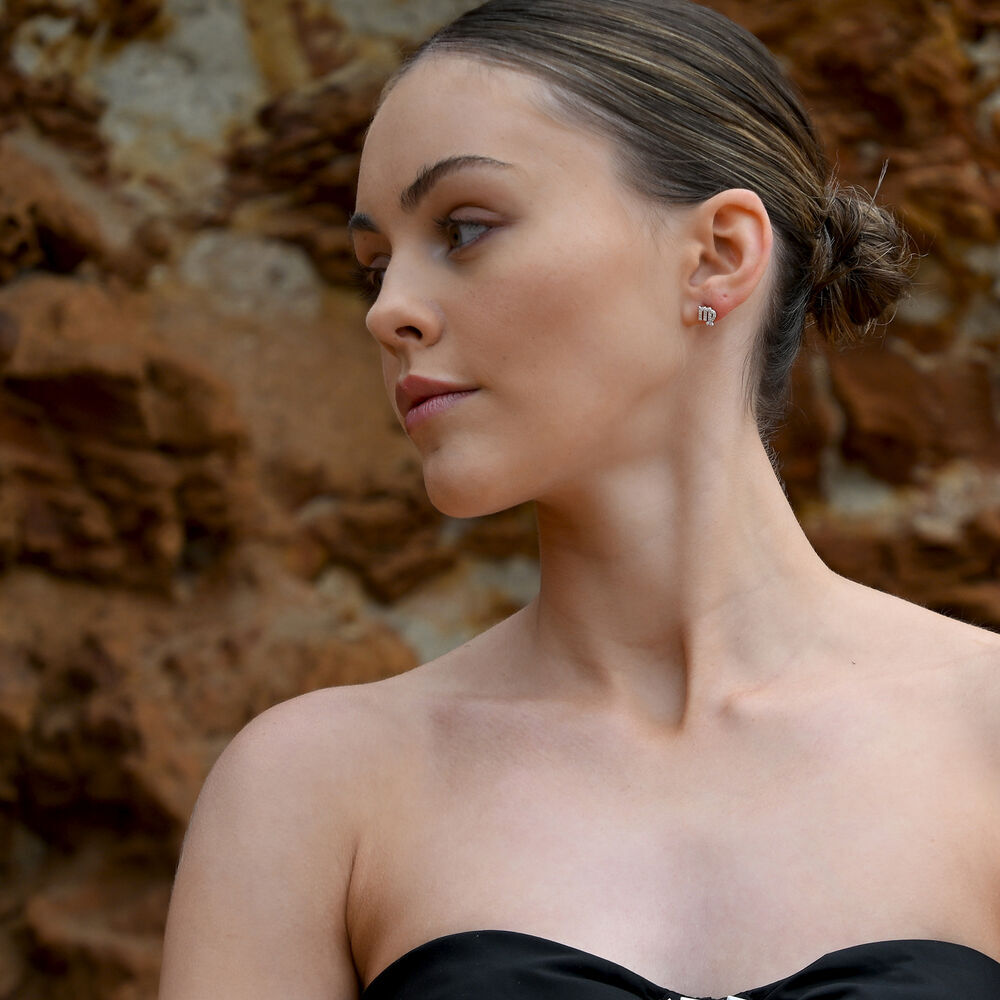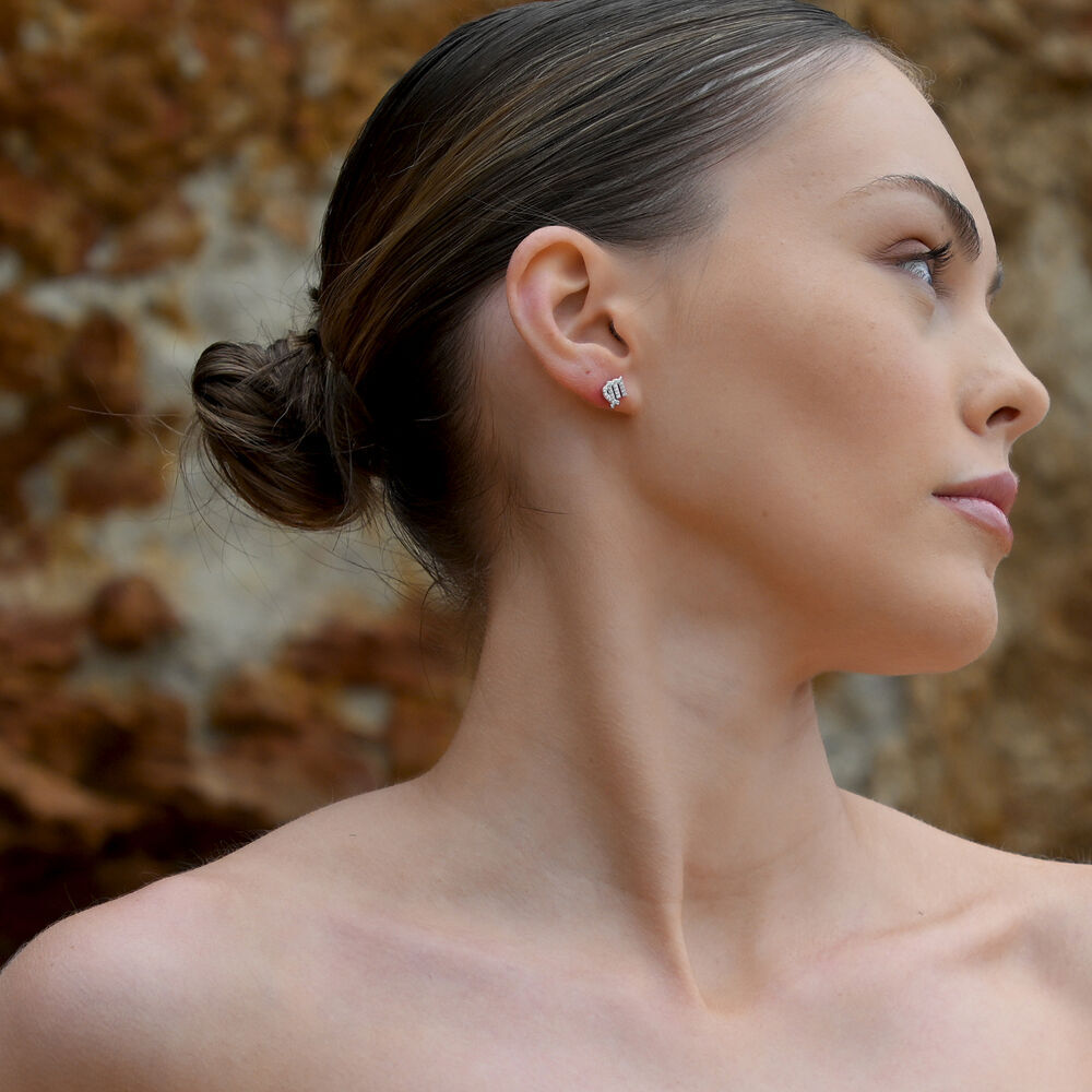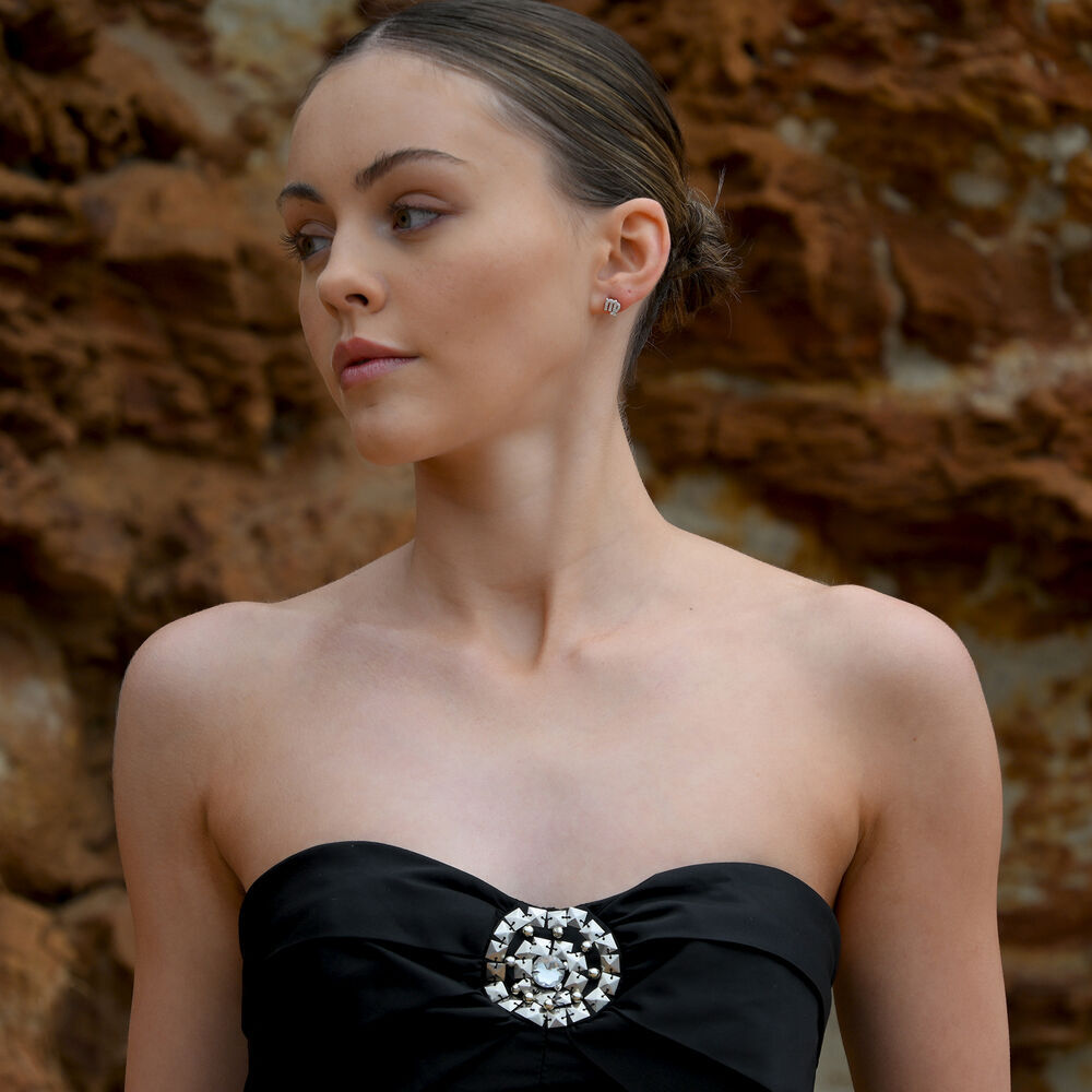 Each earring is meticulously crafted from solid sterling silver and finished with precious white rhodium plating, offering enhanced anti-tarnish protection and a brighter, more radiant silver shine. The surface is set with Australian cubic zirconia pavé, forming a delicate constellation of light that sparkles beautifully with every movement.
