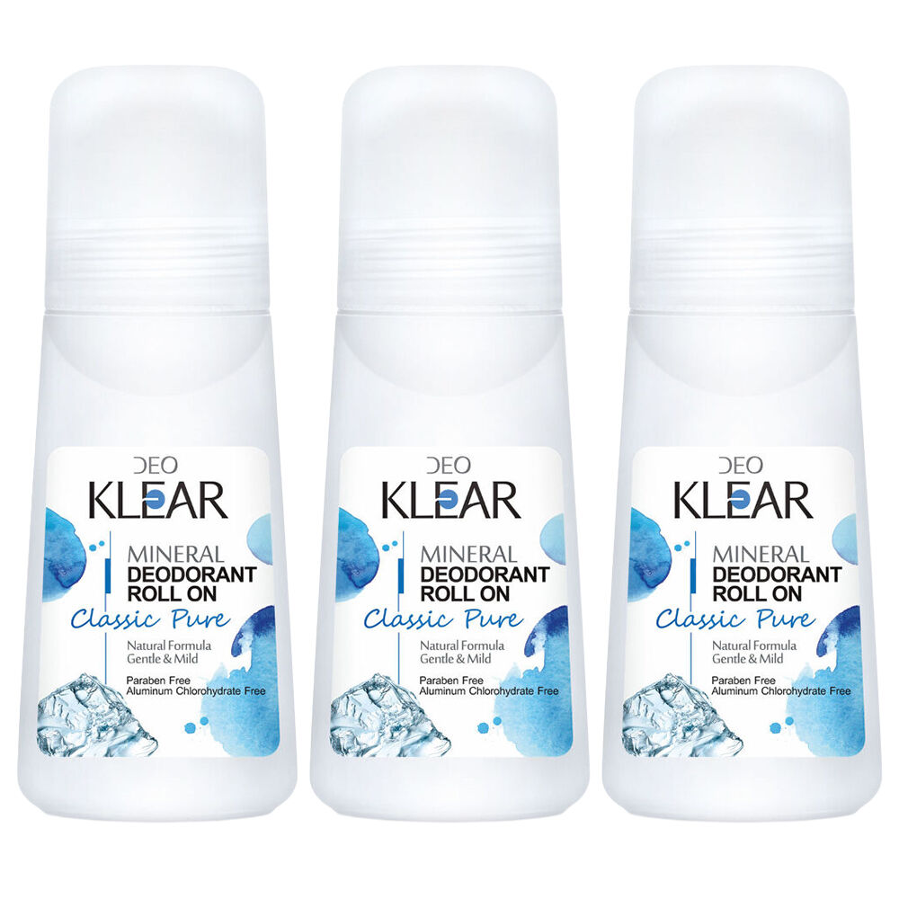 3 x Deoklear Mineral Deodorant Classic Pure Roll On 100ml