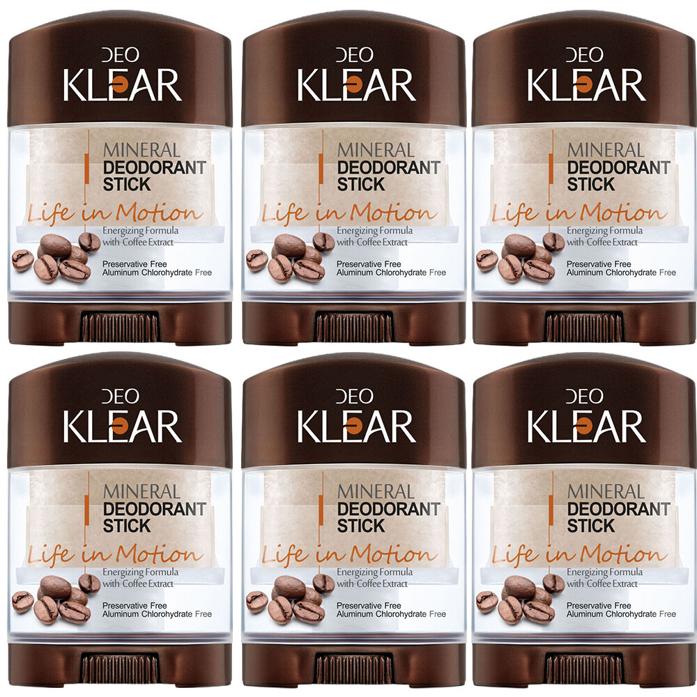 6 x Deoklear Mineral Deodorant Life In Motion Coffee 70g each