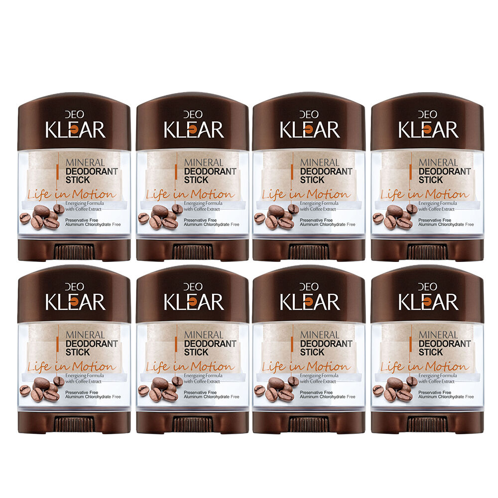 8 x Deoklear Mineral Deodorant Life In Motion Coffee 70g each