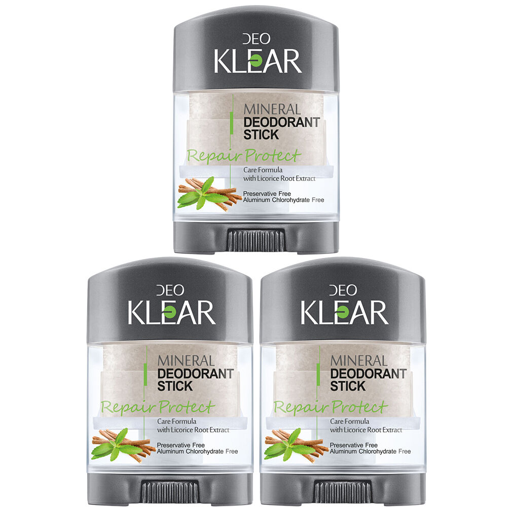 3 x Deoklear Mineral Deodorant Repair Protect Licorice Extract 70g each