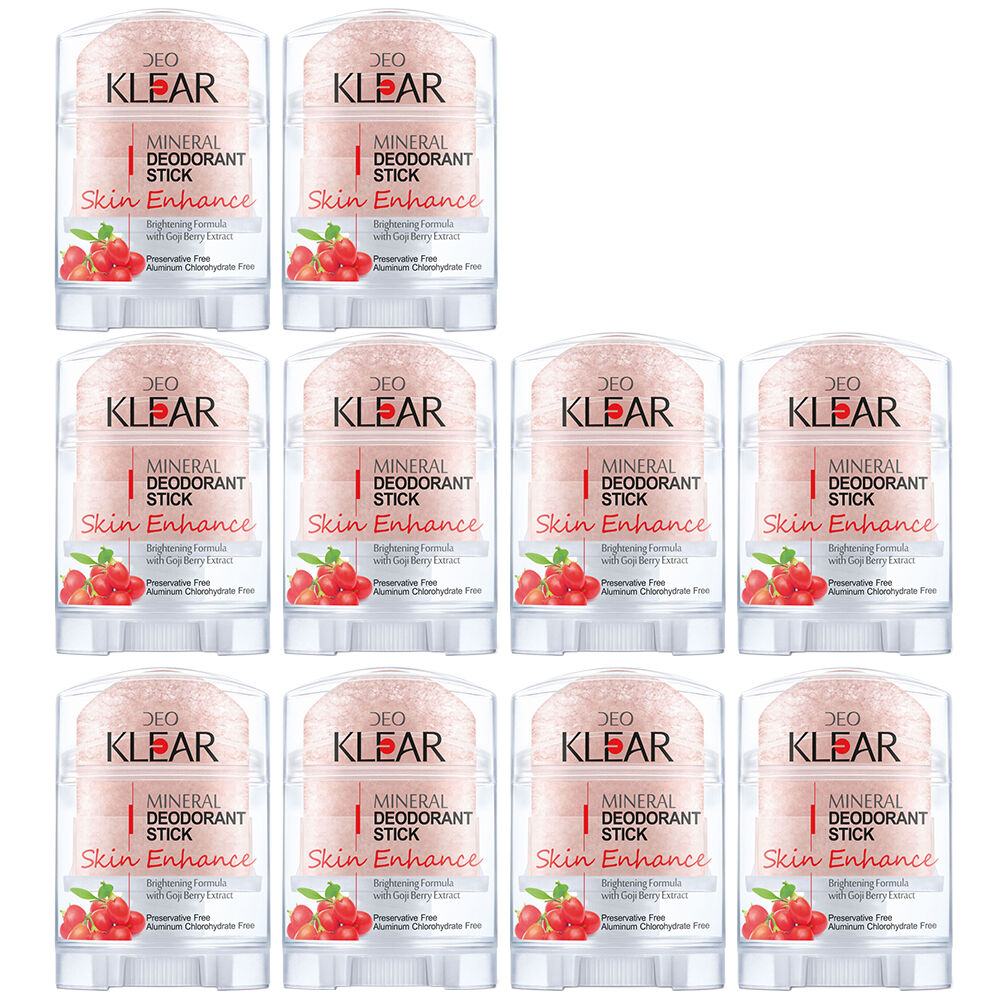 Stay confidently fresh while enhancing your skin every day with Deoklear Mineral Deodorant Skin Enhance Goji Berry Add the 10 pack to your cart now for reliable protection and skin care