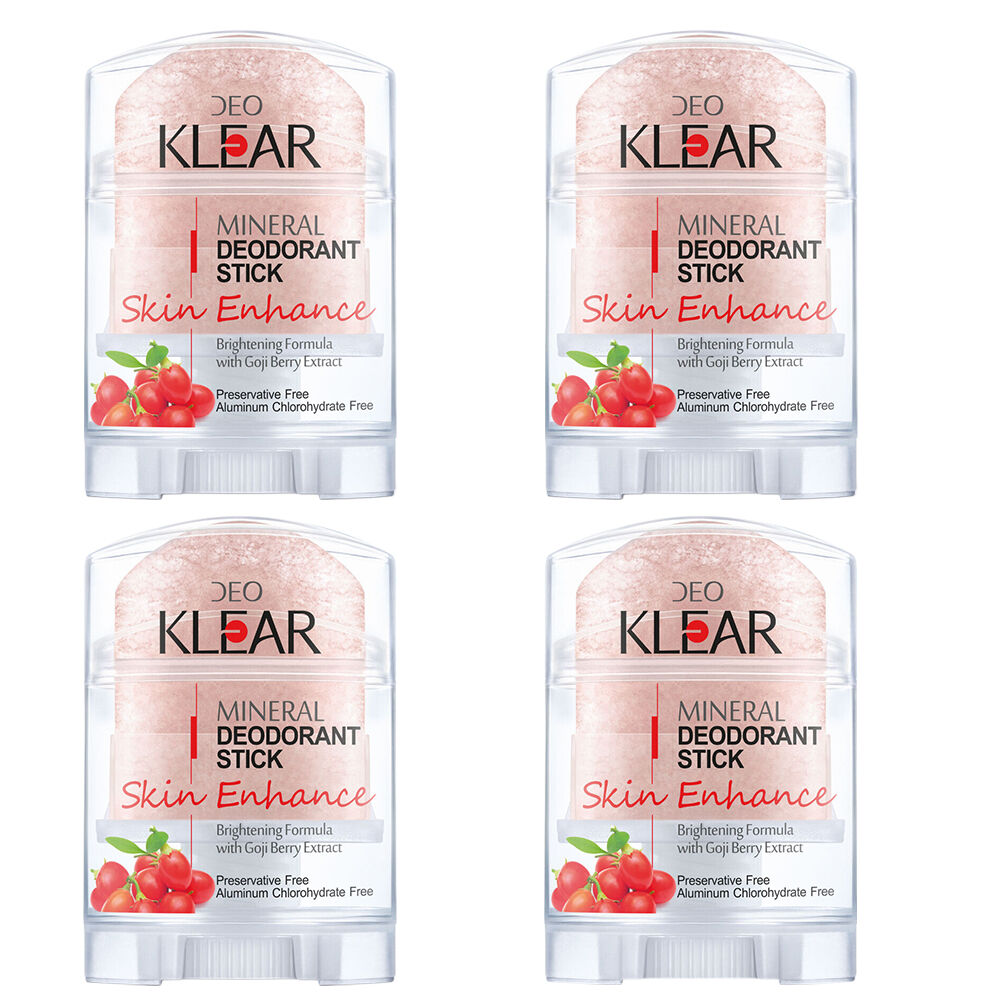 Stay confidently fresh while enhancing your skin every day with this value 4 pack of Deoklear Mineral Deodorant Skin Enhance Goji Berry Add this aluminium free 70g deodorant bundle to your cart today for reliable protection and skin care