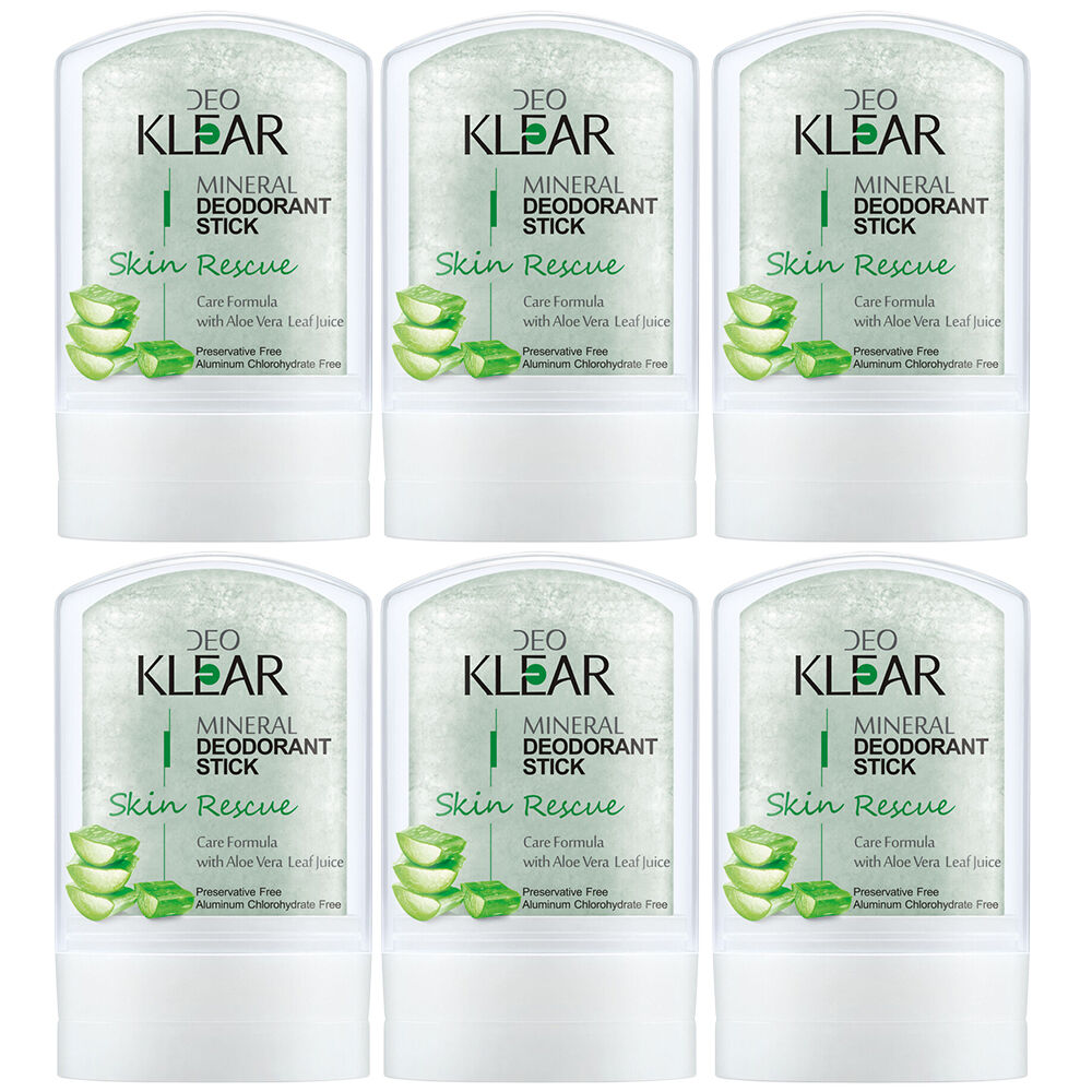 6 x Deoklear Mineral Deodorant Skin Rescue Aloe Vera 60g