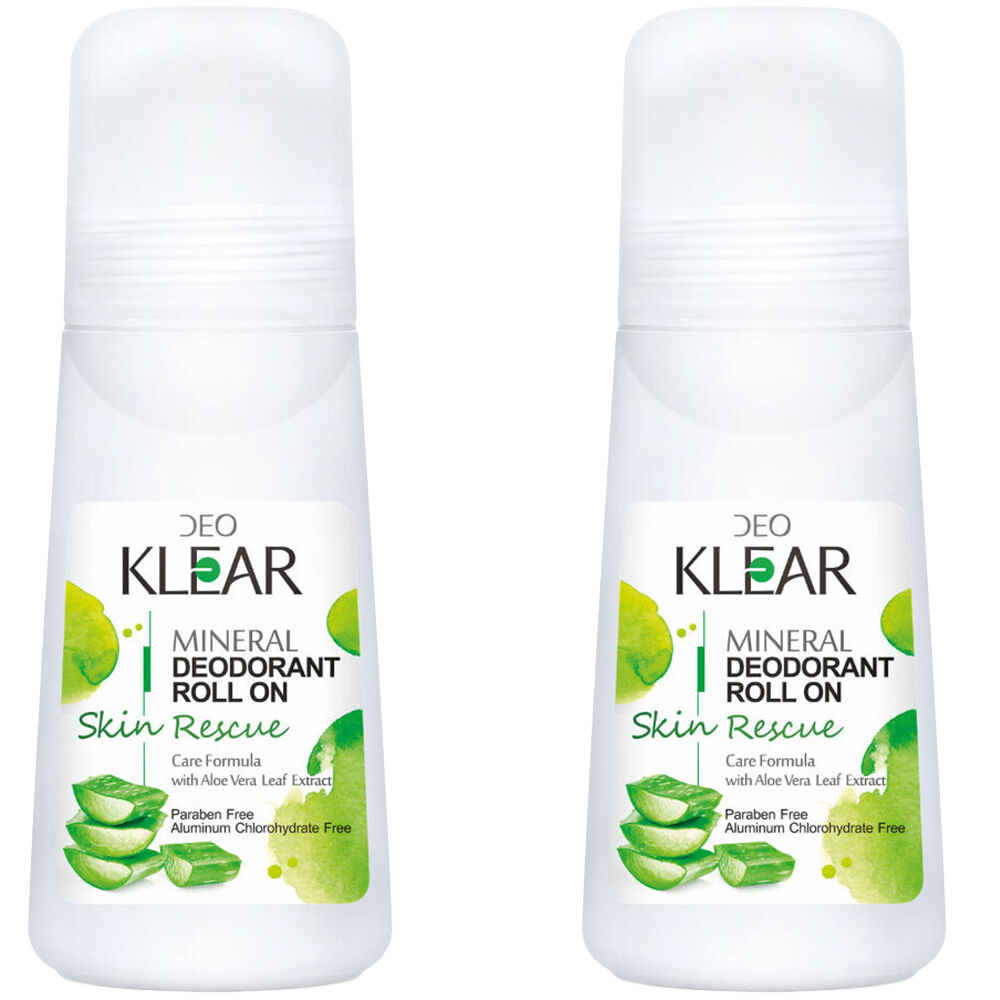 2 x Deoklear Mineral Deodorant Skin Rescue Aloe Vera Roll On 100ml