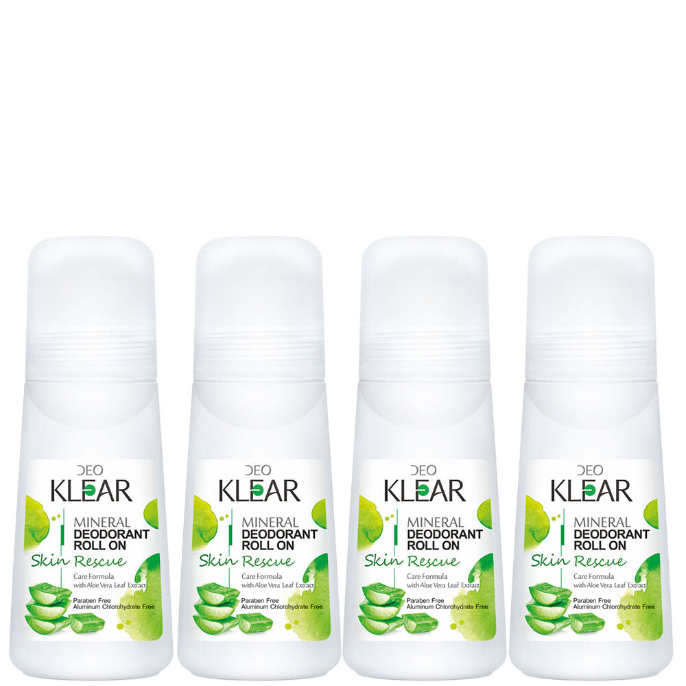 4 x Deoklear Mineral Deodorant Skin Rescue Aloe Vera Roll On 100ml