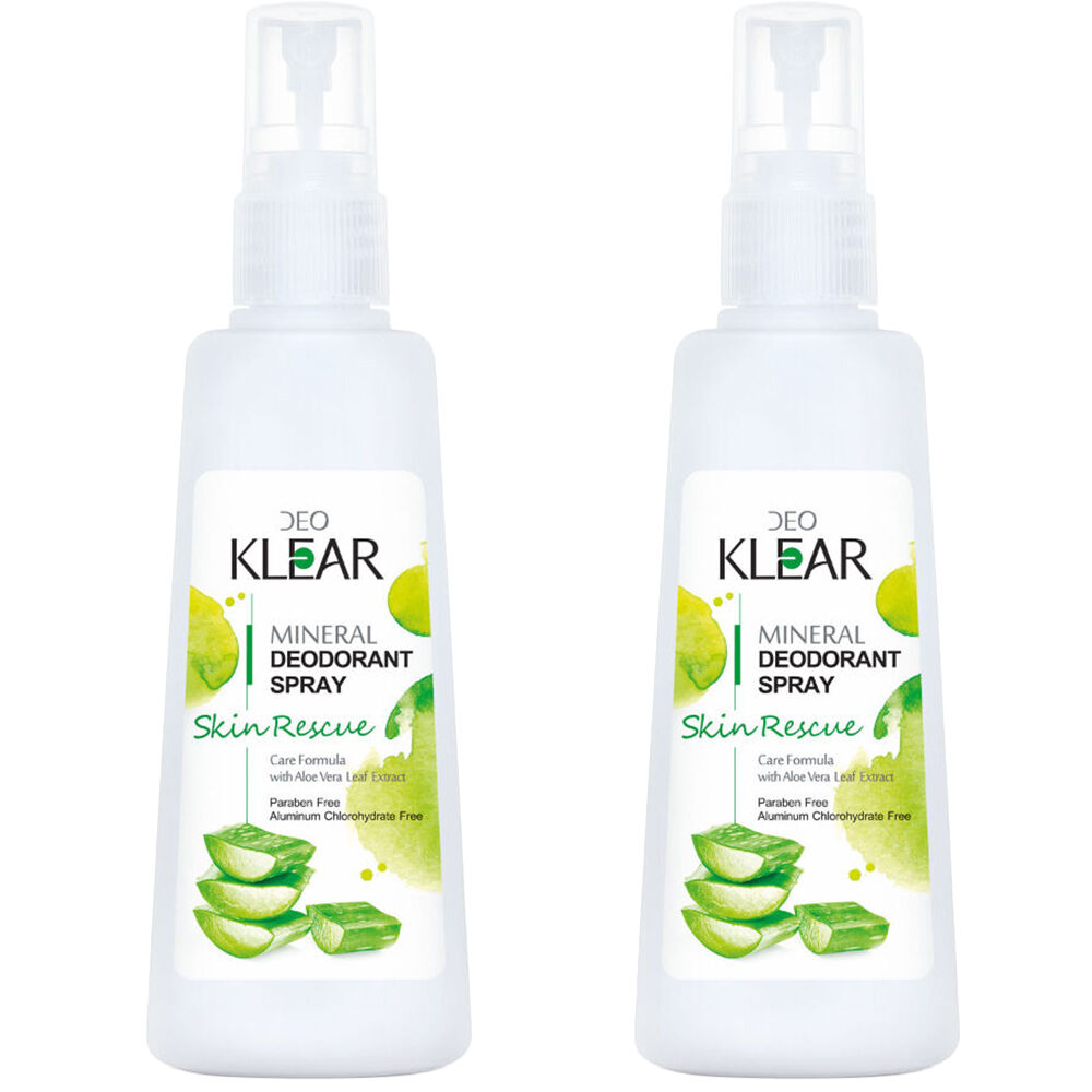 2 x Deoklear Mineral Deodorant Skin Rescue Aloe Vera Spray 100ml each