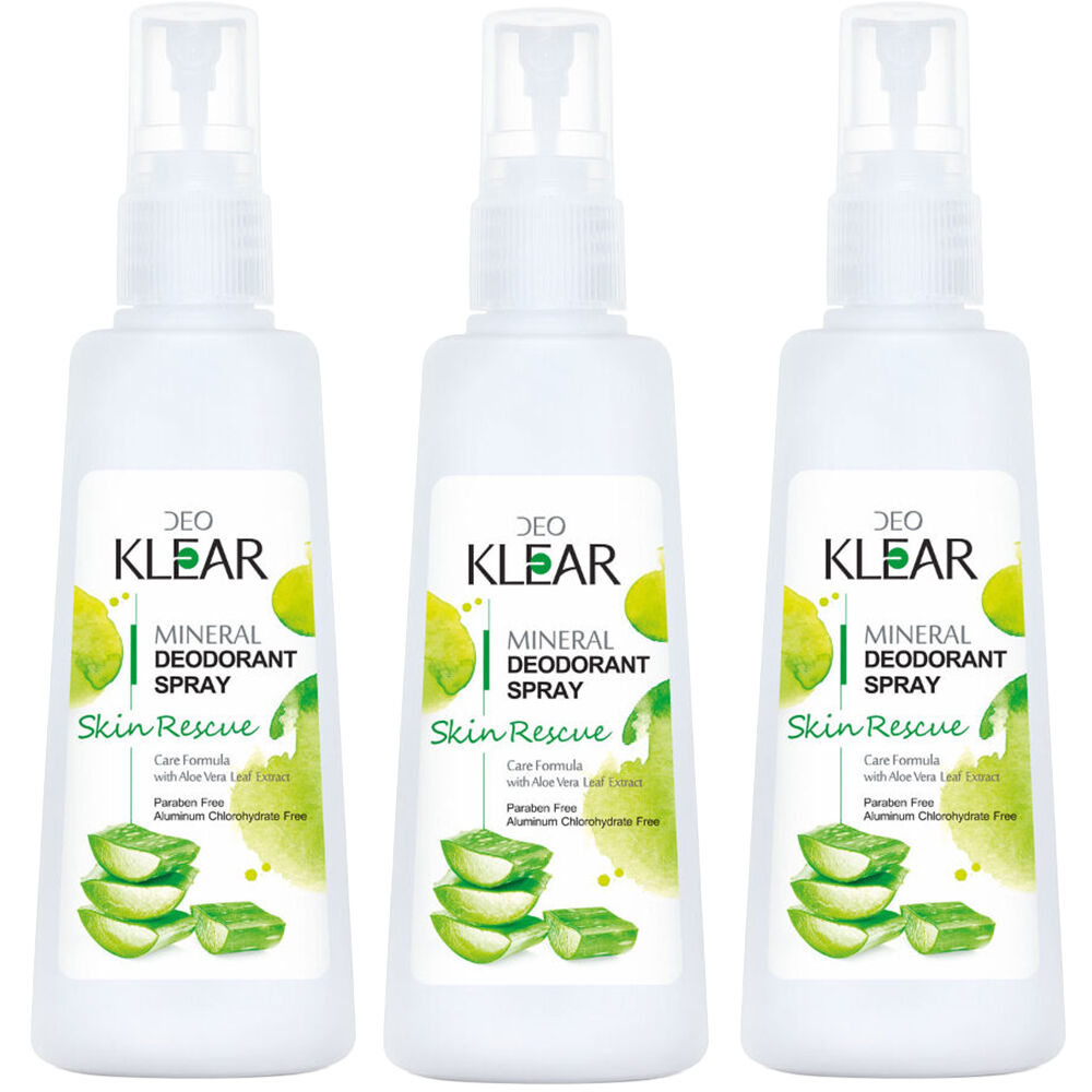 Stay calm comfortable and confidently fresh with this 3 pack of Deoklear Mineral Deodorant Skin Rescue Aloe Vera Spray. Add to your cart now for gentle everyday protection.