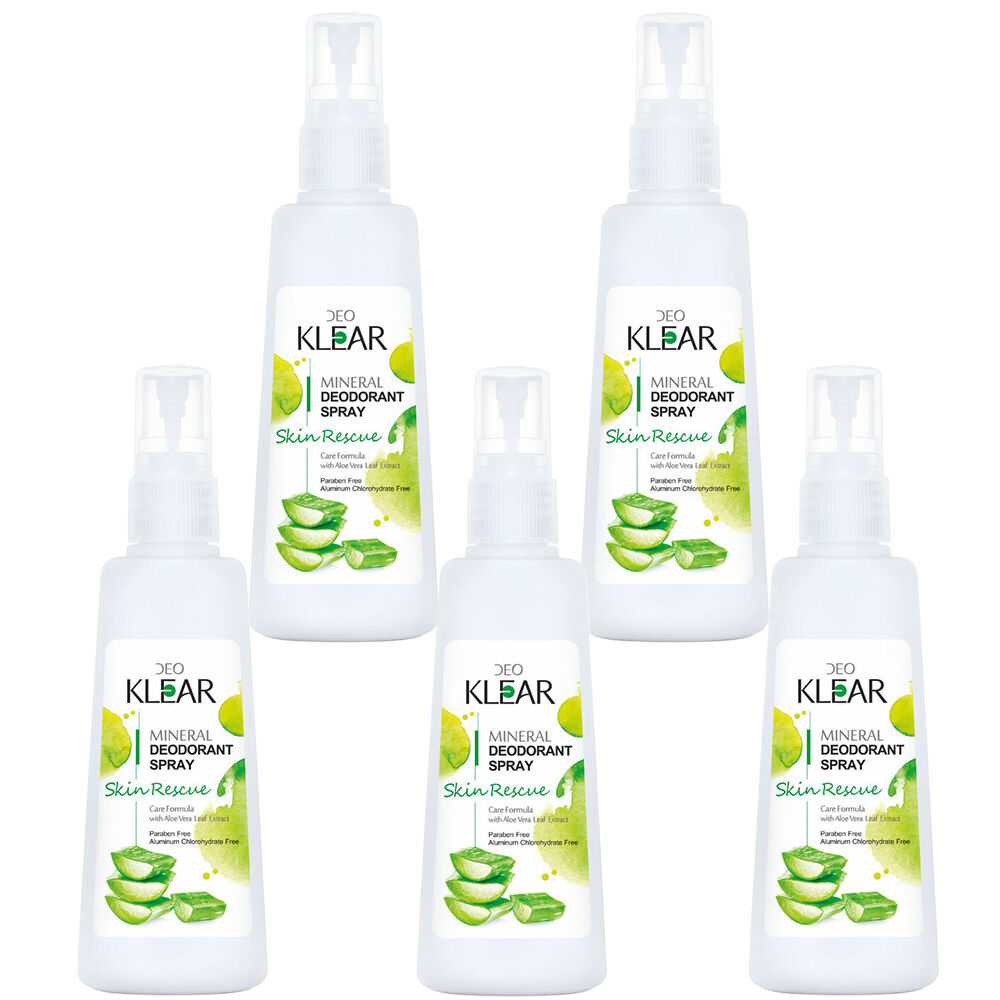 5 x Deoklear Mineral Deodorant Skin Rescue Aloe Vera Spray 100ml