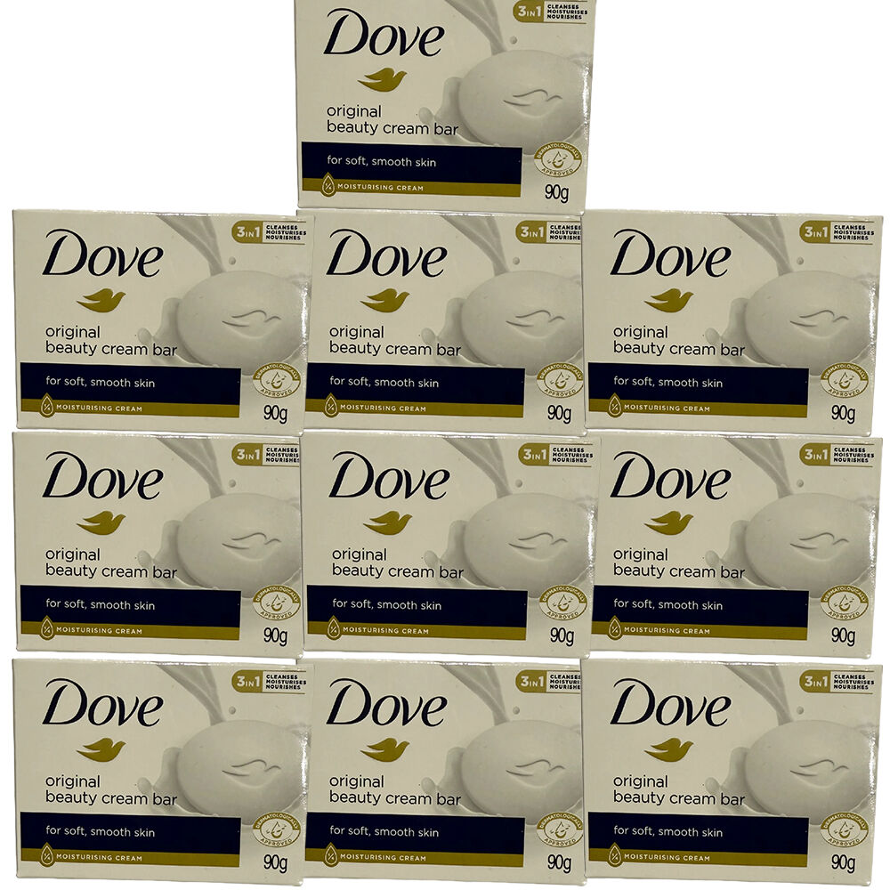 Enjoy soft smooth and healthy looking skin every day with the Dove Beauty Cream Bar Original 90g x 10. Formulated with _ moisturising cream this gentle beauty bar nourishes your skin while cleansing leaving it feeling hydrated and cared for after every wash. Unlike ordinary soap bars that can strip away essential moisture Dove Beauty Bar contains mild cleansers that help maintain your skinÕs natural balance while effectively removing dirt and bacteria. Dermatologically approved and pH balanced this beauty bar is suitable for daily use on both face and body. Its gentle formula is sulphate SLES free and paraben free making it ideal for everyday skincare routines and suitable for a wide range of skin types.