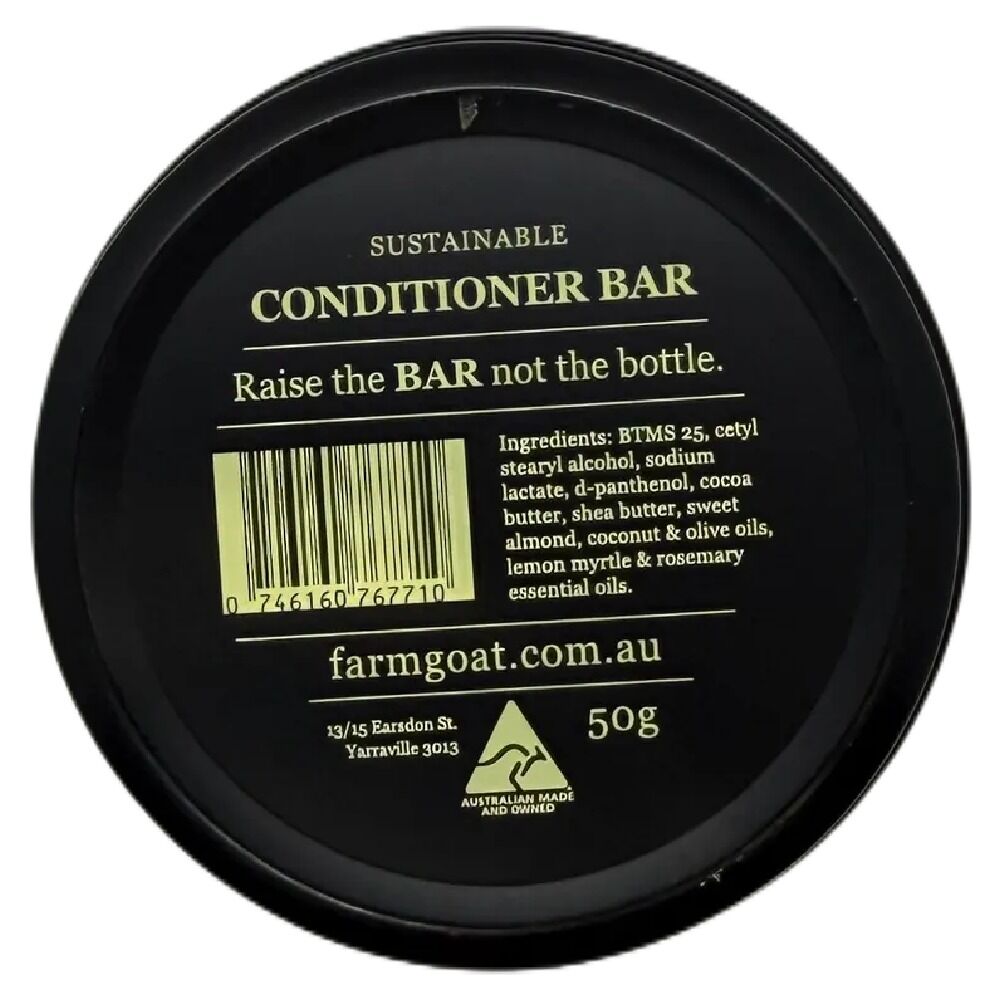 Experience smooth nourished hair with Farm Goat Conditioner Bar 50g presented in a convenient storage tin designed to keep your conditioner bar protected and long lasting. This sustainable solid conditioner is enriched with nourishing ingredients to help hydrate soften and manage your hair naturally.