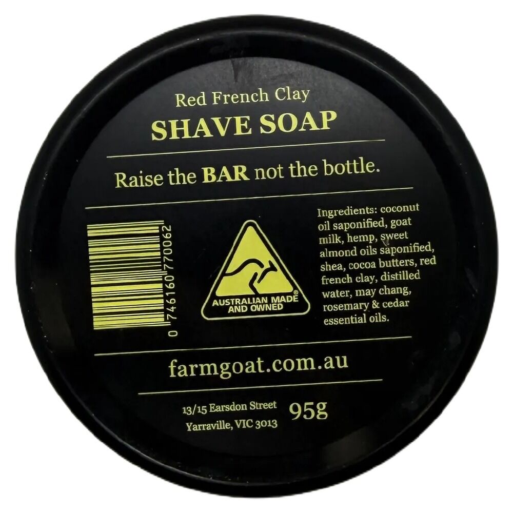 Upgrade your grooming routine with Farm Goat Red French Clay Shave Bar 95g presented in a durable storage tin designed to keep your shave soap protected and travel ready. This premium shaving bar is crafted with natural ingredients to deliver a smooth comfortable shave while nourishing your skin.