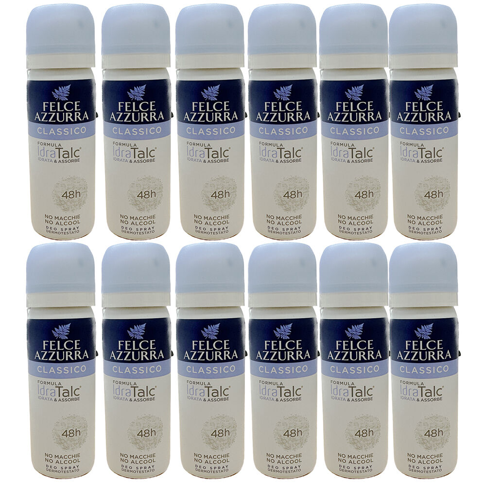 12 x Felce Azzurra Classico Original Deodorant Spray 50ml each No Alcohol