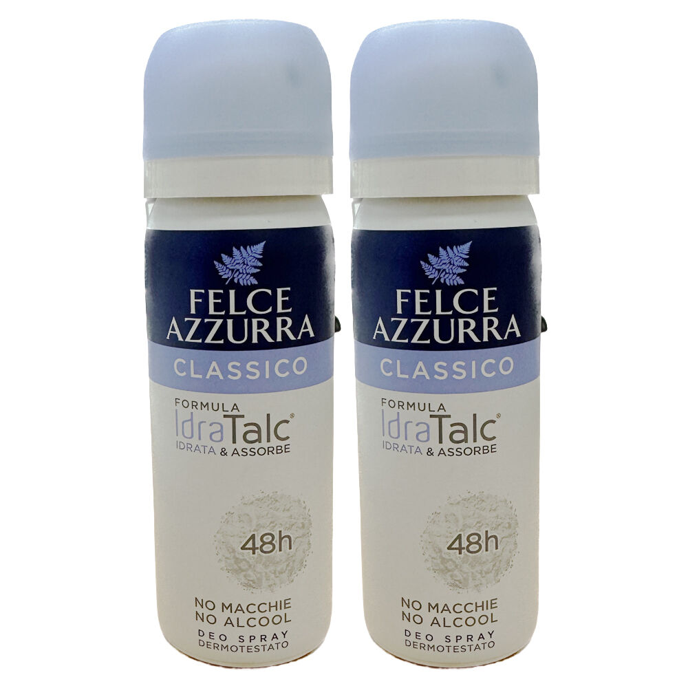 2 x Felce Azzurra Classico Deodorant Spray 50ml travel size bottles