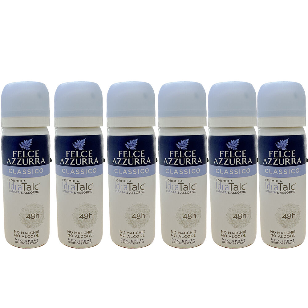 6 x Felce Azzurra Classico Original Deodorant Spray 50ml travel size bottles