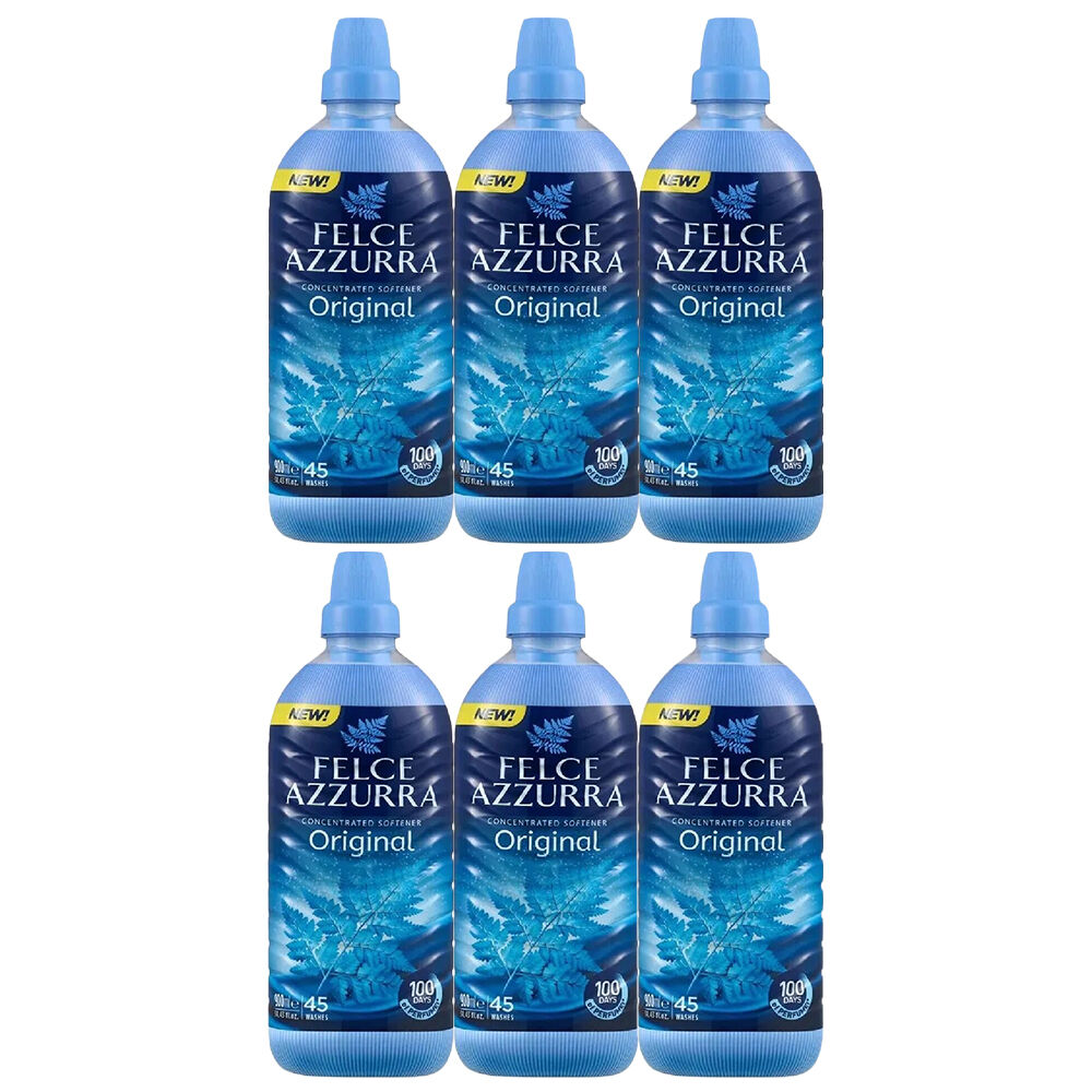 Felce Azzurra Classico Original fabric softener delivers a unique long lasting fragrance composed of more than 100 ingredients and a gentle formula that softens and cares for garments. This value set contains six 900ml bottles to keep your laundry fresh for many washes.