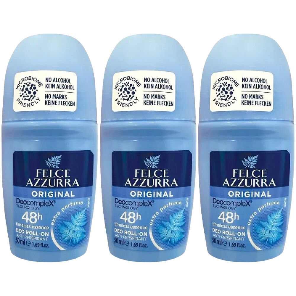 Experience the classic Italian fragrance of Felce Azzurra Classico Roll On Deodorant 50ml No Alcohol in a convenient pack of 3. The unique scent is composed of more than 100 ingredients passed down in the Paglieri family notebook and delivers a refined aromatic profile for everyday use.