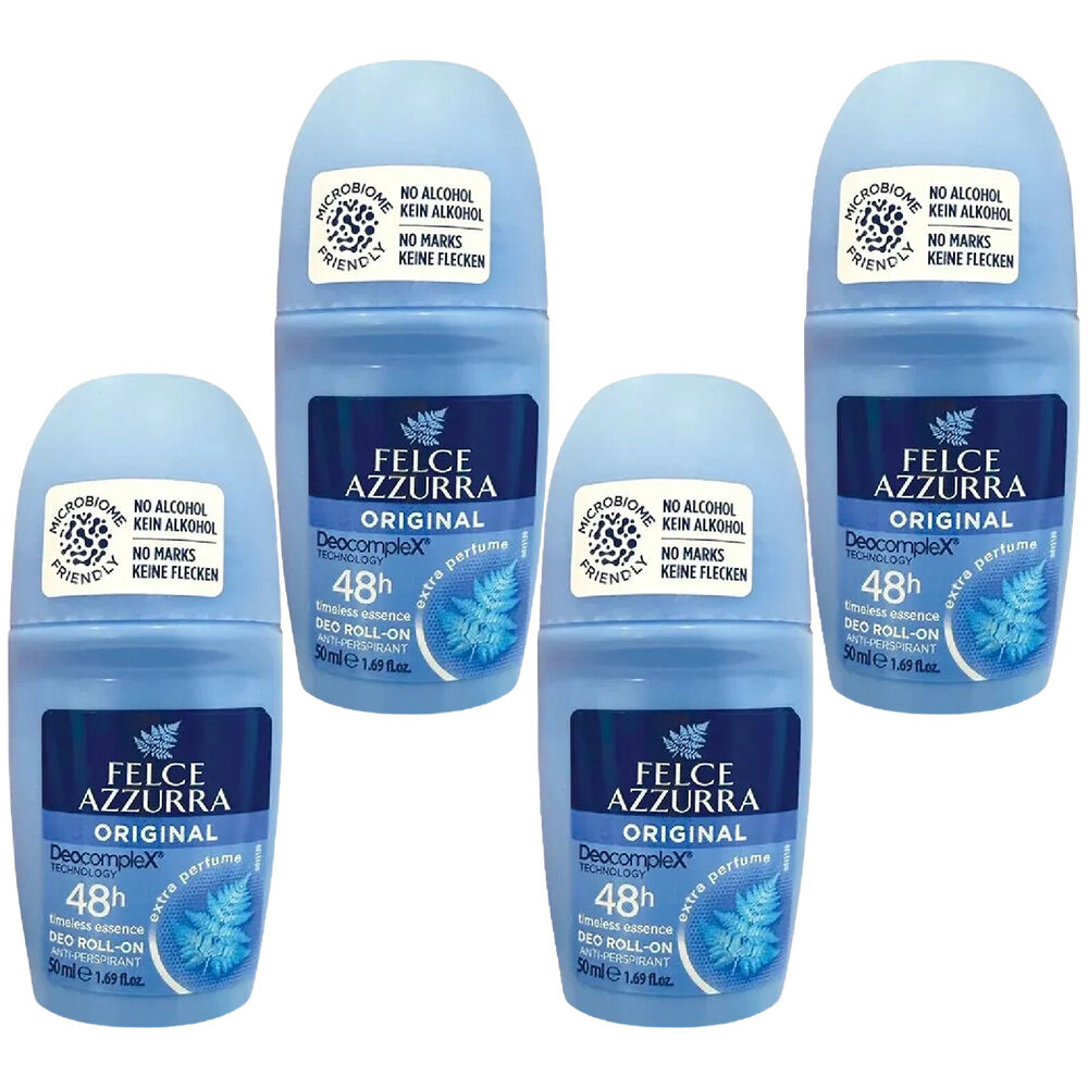 Experience the timeless Italian fragrance of Felce Azzurra Classico Roll On Deodorant No Alcohol. This value pack of four 50ml roll ons delivers the classic aromatic blend created from a family recipe passed down through generations.