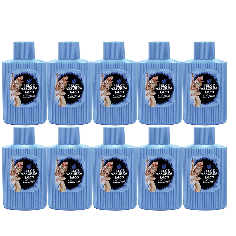 Experience the timeless Felce Azzurra Classico fragrance with this value pack of 10 talcum powder shakers. Each 200g shaker delivers a soft, silky powder that freshens skin after bathing and leaves a classic aromatic scent.