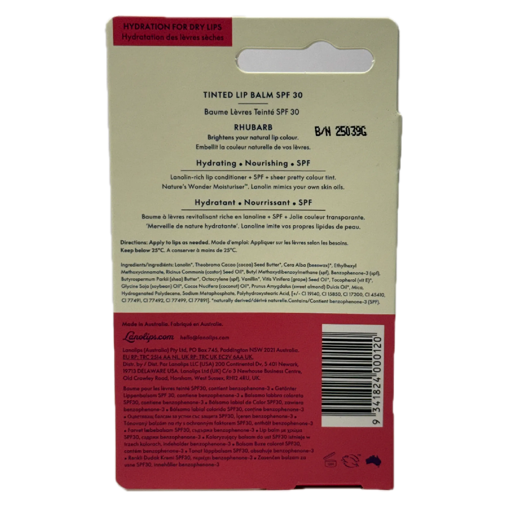 1 x Lanolips Tinted Lip Balm SPF 30 Rhubarb 12.5g