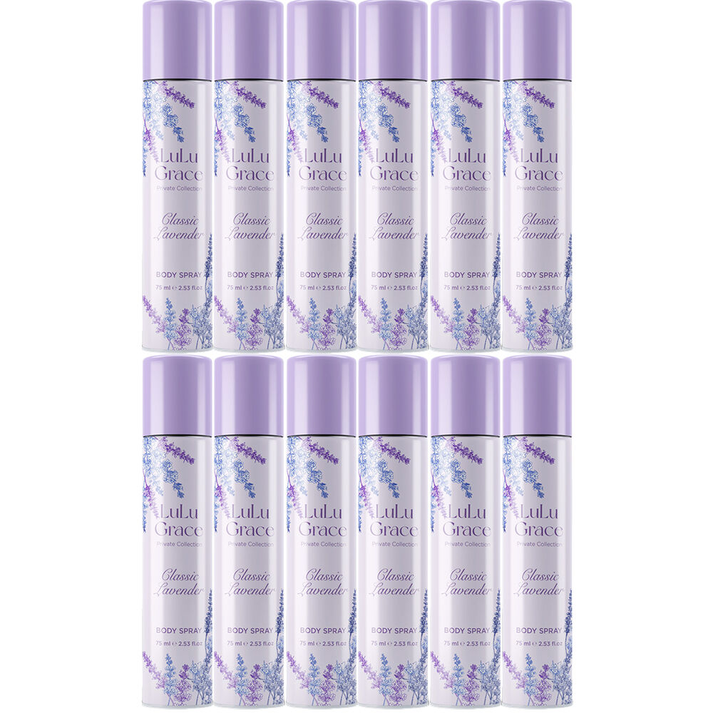 Experience soothing lavender aroma with the Lulu Grace Private Collection Lavender Body Spray 75ml x12 pack. Ideal for everyday refreshment relaxation and a classic floral finish.
