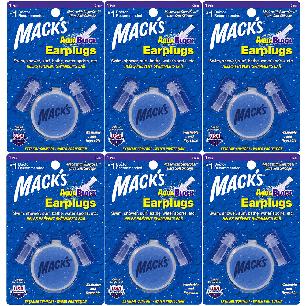 6 x pairs Macks AquaBlock ultra soft silicone earplugs