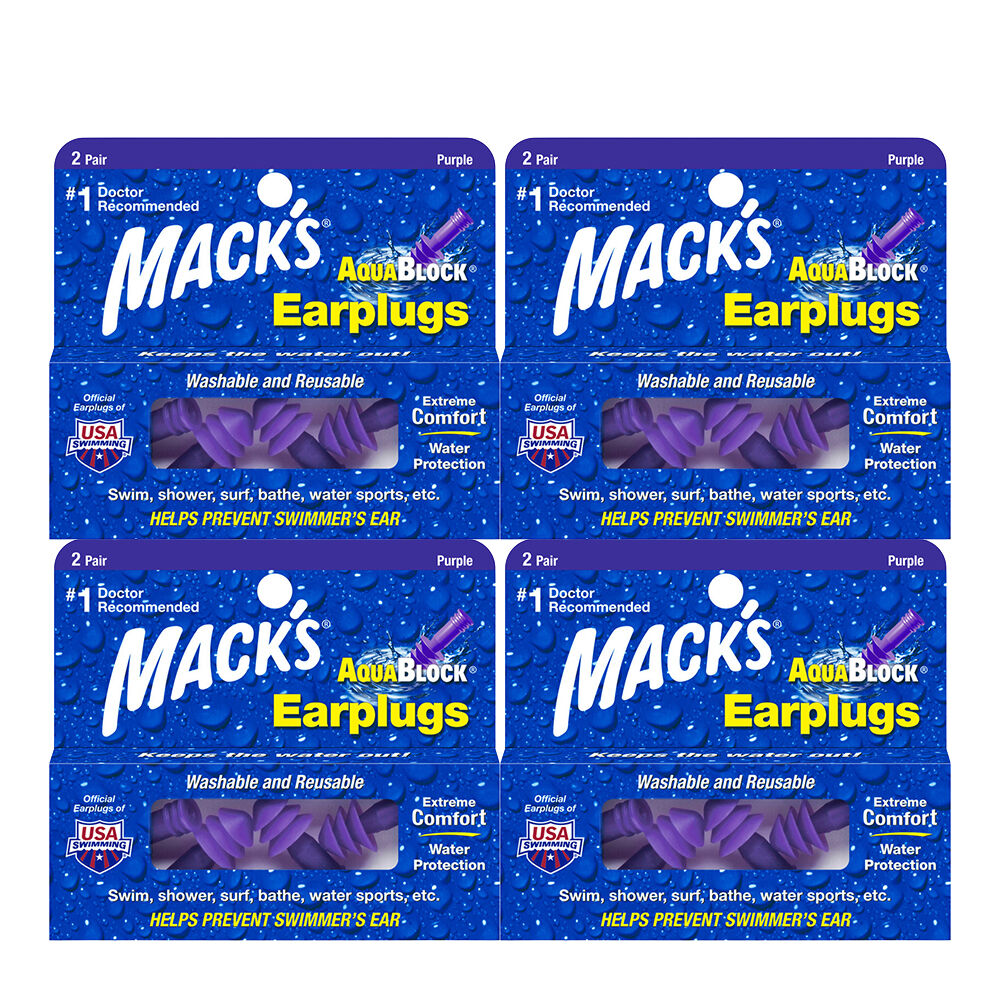 Experience reliable waterproof ear protection with Macks AquaBlock Purple Earplugs. These pre molded silicone plugs feature a unique flex stem and triple flange design for a secure, comfortable seal that helps keep water out during swimming and water sports.