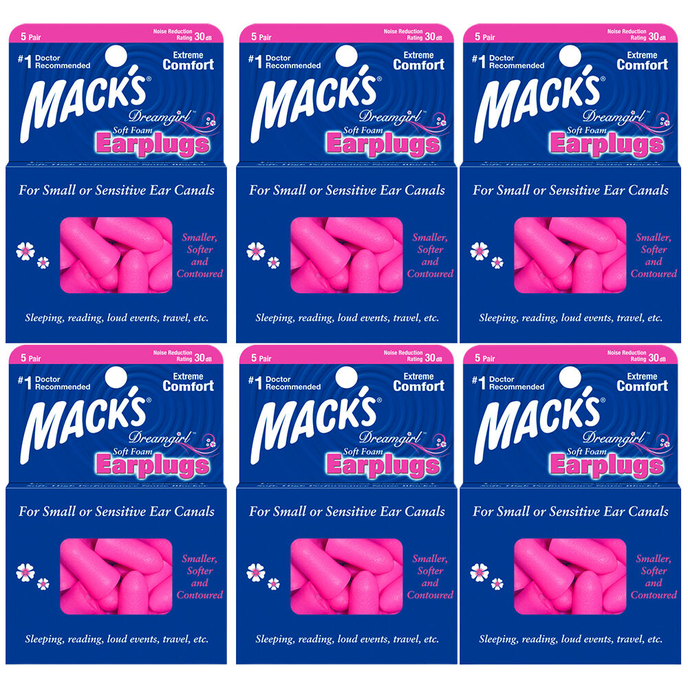 6 x Macks Dreamgirl Soft Foam Earplugs 5 pair per pack 30 pairs total