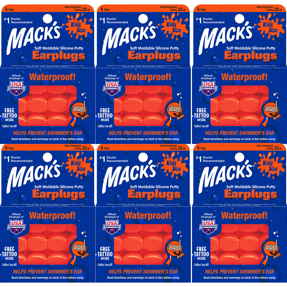 Keep kids safe and comfortable in water and noisy environments with the Macks Kids Waterproof Silicone Putty Earplugs 6 Pair Bundle. This value pack delivers a soft mouldable seal that protects ears from water, loud noise, and pressure while remaining gentle on delicate skin.