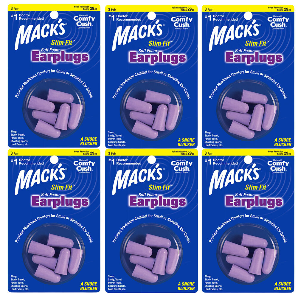 Experience comfortable reliable hearing protection with Macks Slim Fit Soft Foam Earplugs Pack of 6. This value bundle contains 3 pairs of super soft polyurethane foam earplugs designed for a slim comfortable fit and a Noise Reduction Rating of 29 dB to reduce harmful noise during sleep travel work and sports.