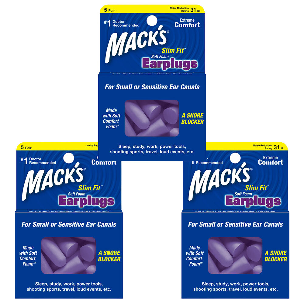 Experience comfortable hearing protection with Macks Slim Fit Soft Foam Earplugs. This bundle includes 3 packs of 5 pairs each for a total of 15 pairs with Noise Reduction Rating NRR 31 dB for high performance protection in noisy environments.