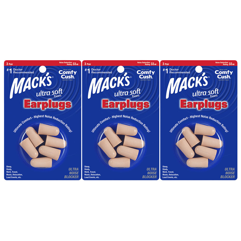 3 pairs Macks Ultra Soft Foam Earplugs 6 earplugs total