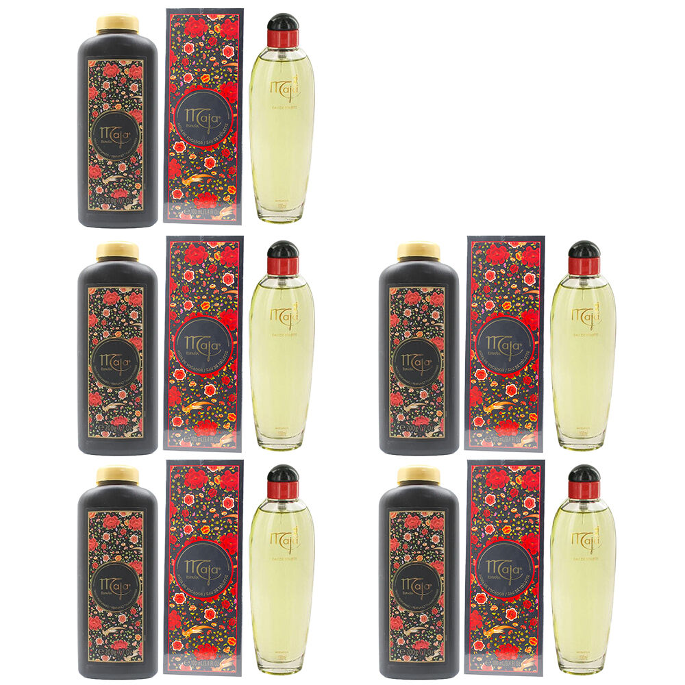 Experience timeless Spanish elegance with the Maja Eau De Toilette 100ml and Maja Perfumed Talcum Powder 200g set for women. This value bundle pack of 5 delivers the classic floral and spicy Maja scent with silky talc for fresh smooth skin and effortless feminine allure.