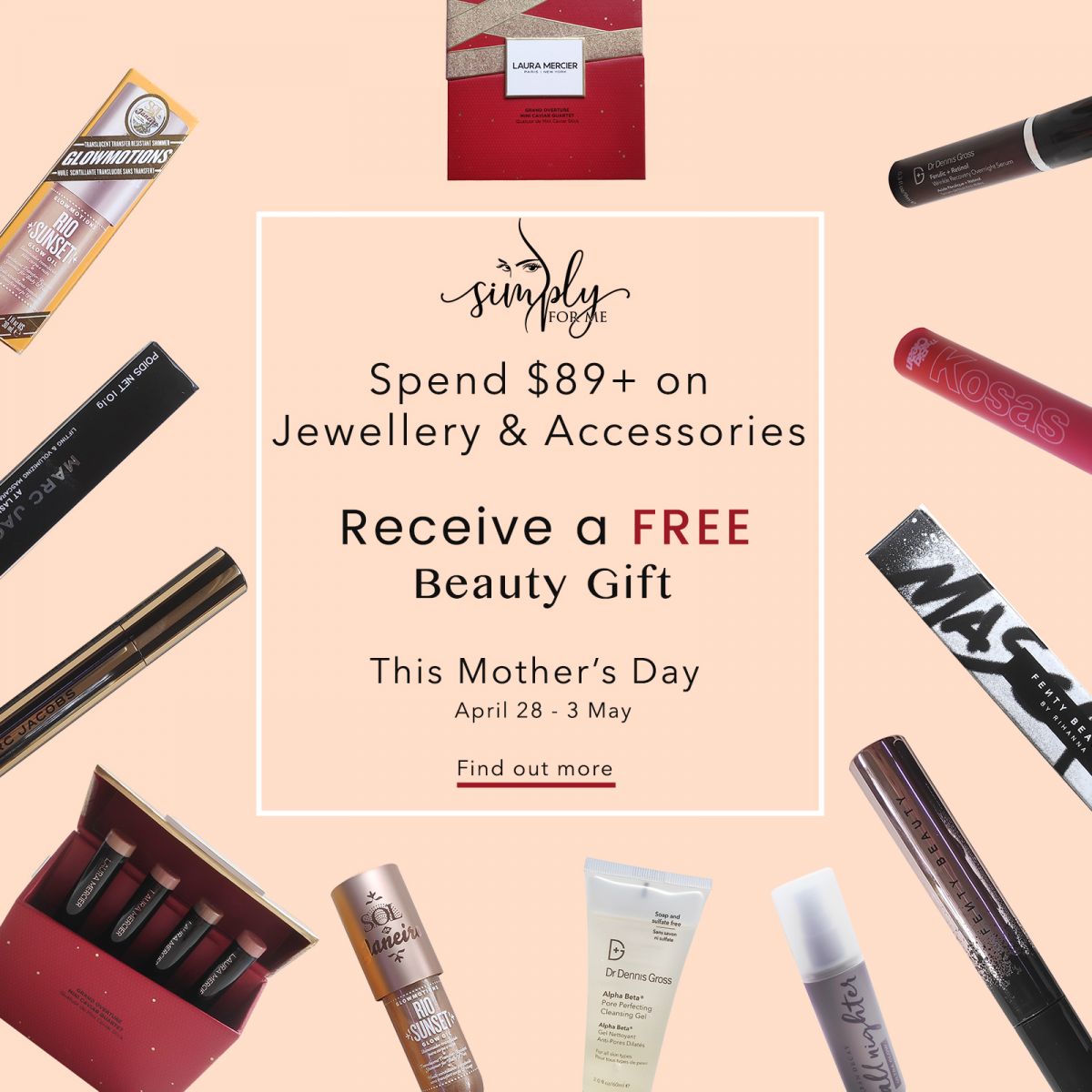 Make this Mother's Day even sweeter! From Wednesday April 28 till Monday May 3, receive a complimentary beauty gift when you spend $89+ on Culturesse jewellery and fashion accessories via Simply For Me online store. You will receive at random an item of one of the following brands from Mecca Cosmetica: